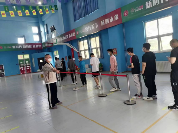 核酸检测工作需各部门高度协同,为有条不紊的推进工作,在学生返校前,防控办牵头,办公室、学保处、科研信息处、纪委办和各二级学院抽调专人,组建了全员核酸检测应急队伍,邀请大信镇政府工作人员对应急队伍进行了培训,对现场布置、网络和设备调试、现场组织、核酸采用、样本运转、场地通风消毒等进行了演练。
