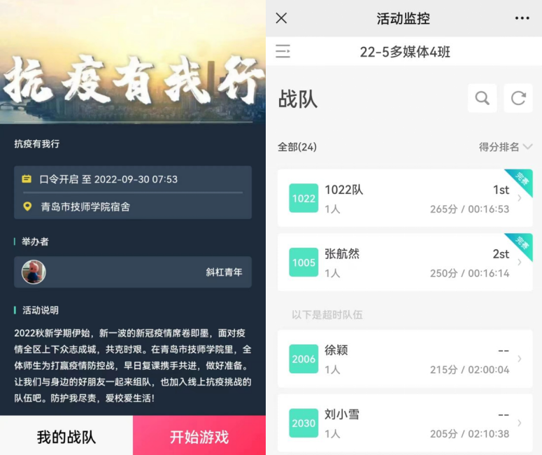 基础教育部坚持“玩趣而有得”的理念,开发了“抗疫有我行”活动小程序,把防疫知识、诚信教育、爱国精神等内容融入到游戏化界面。学生通过小组合作的方式完成互动,在通关的过程中掌握了疫情防控的相关知识,在项目示范中学会了疫情防控的具体做法,在材料阅读中了解英雄事迹,在闯关中体验诚信是金。