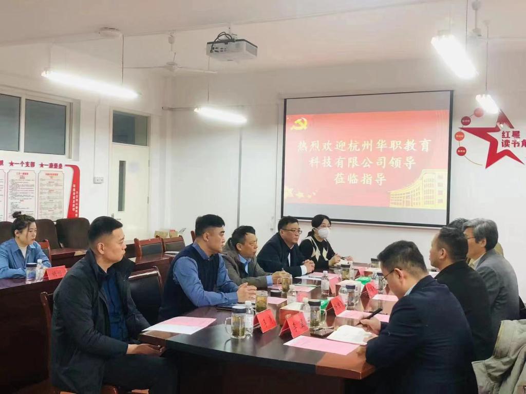 1月13日,杭州华职教育科技有限公司董事长郭培民、副总经理杨胜飞,冠军联盟负责人周建强等一行5人到我院考察、交流。学院党委书记张秋生,党委委员、副院长刘兴一接待了郭培民一行。