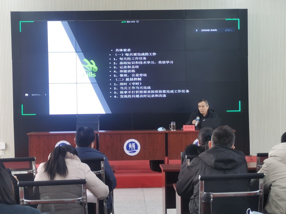 李全利教授自2012年起,连续担任第42至46届世界技能大赛机电一体化项目中国专家组组长,多次带领中国队选手获得“金牌”和“银牌”,培养了全国技术能手15人。培训会上,李教授结合自身多年指导世界技能大赛的经验,讲解了如何做好竞赛选手的选拔、培养和备赛以及世赛基地建设等内容。他还从世界技能大赛角度对学院的机电一体化专业的课程改革方向给出了宝贵的意见和建议。