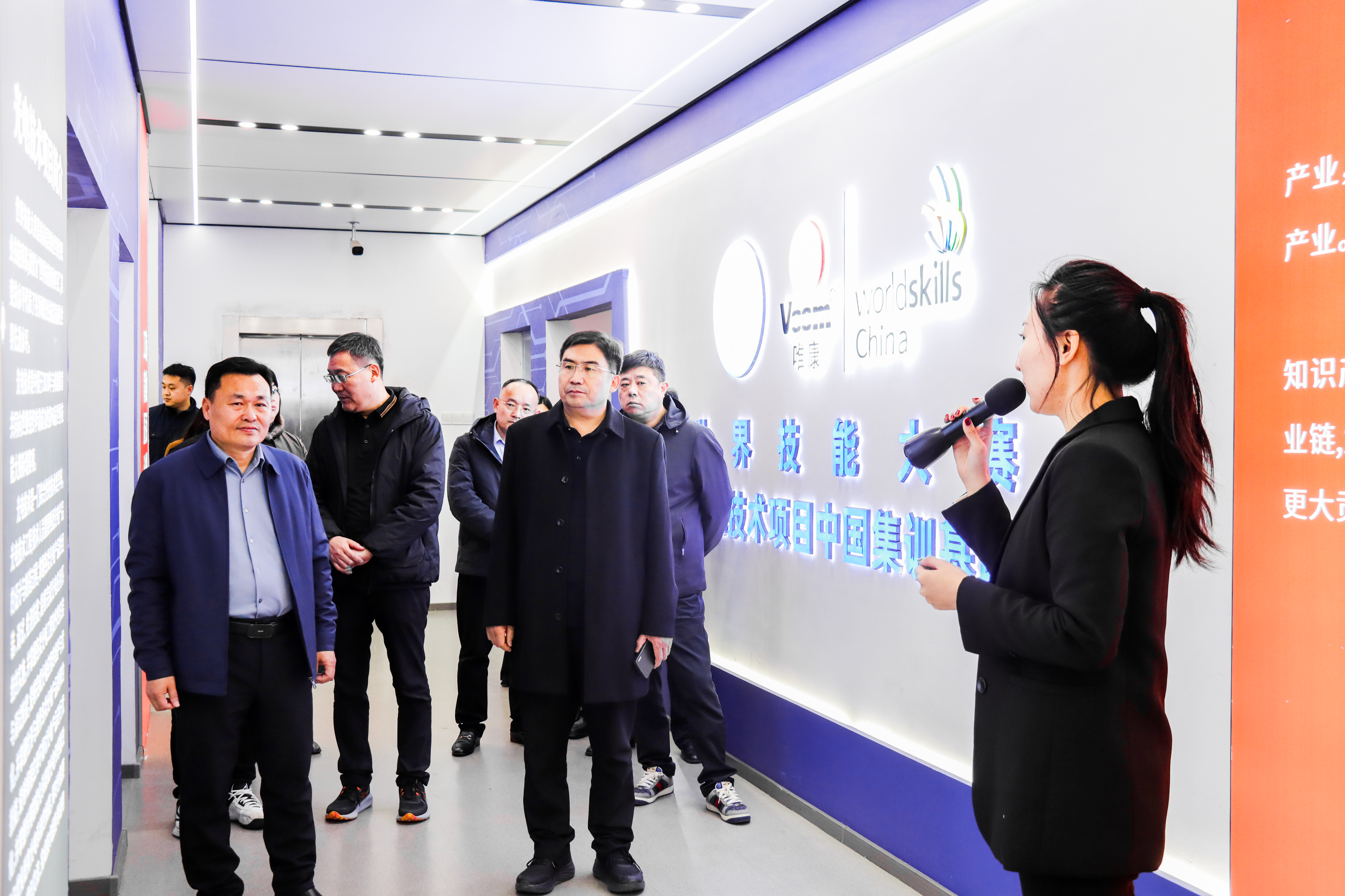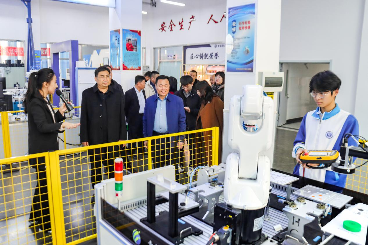 邱世军一行首先参观了学院的轨道交通实训基地、智能制造产教融合基地以及第 27 届世界技能大赛光电技术赛项中国集训基地,实地了解学院在实训教学、技能竞赛、产教融合等方面的建设成果。