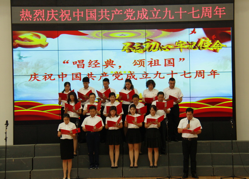 为纪念中国共产党成立97周年,激励广大党员干部坚定理想信念,7月3日下午,青岛市技师学院全体教职工在学生活动中心报告厅举行“唱经典,颂祖国”合唱,热烈庆祝党的生日,院党委全体成员参加本次活动。