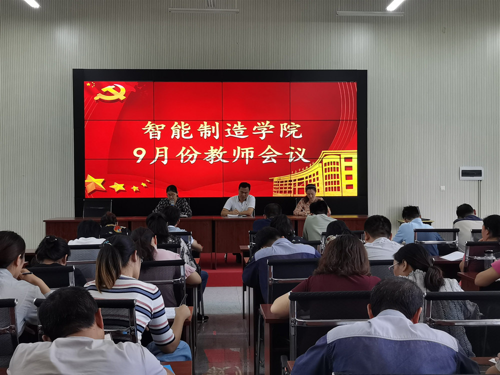 为进一步落实学院教育教学工作要求,统一思想、凝聚共识、深化教育教学改革,部署下一阶段教学工作,智能制造学院在新实训楼报告厅召开9月份教学工作会议。智能制造学院全体教师参加了会议。会议由智能制造学院院长崔桂发主持。