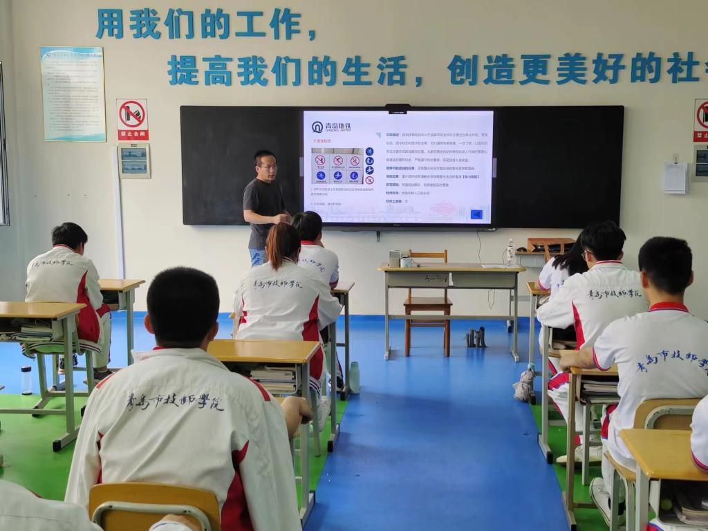 青岛地铁集团机电工程师盛奎以《自动售检票(AFC)系统介绍》为题,结合自身工作实际,围绕自动售检票系统的构成、功能、运营维护及接口等专业知识进行了讲授。盛工贴近工作实际的知识传授让枯燥乏味的知识变得生动形象起来,素材取自地铁工作一线,提高了同学们对日后工作内容的认知,使学生们更加明确学习目标和方向。课程结束后,盛工与在校学生及老师就青岛地铁智慧化出行的相关问题进行了交流与探讨,启发了教师的思路,开阔了学生的眼界,为后续的教学工作开展起到了积极促进作用。