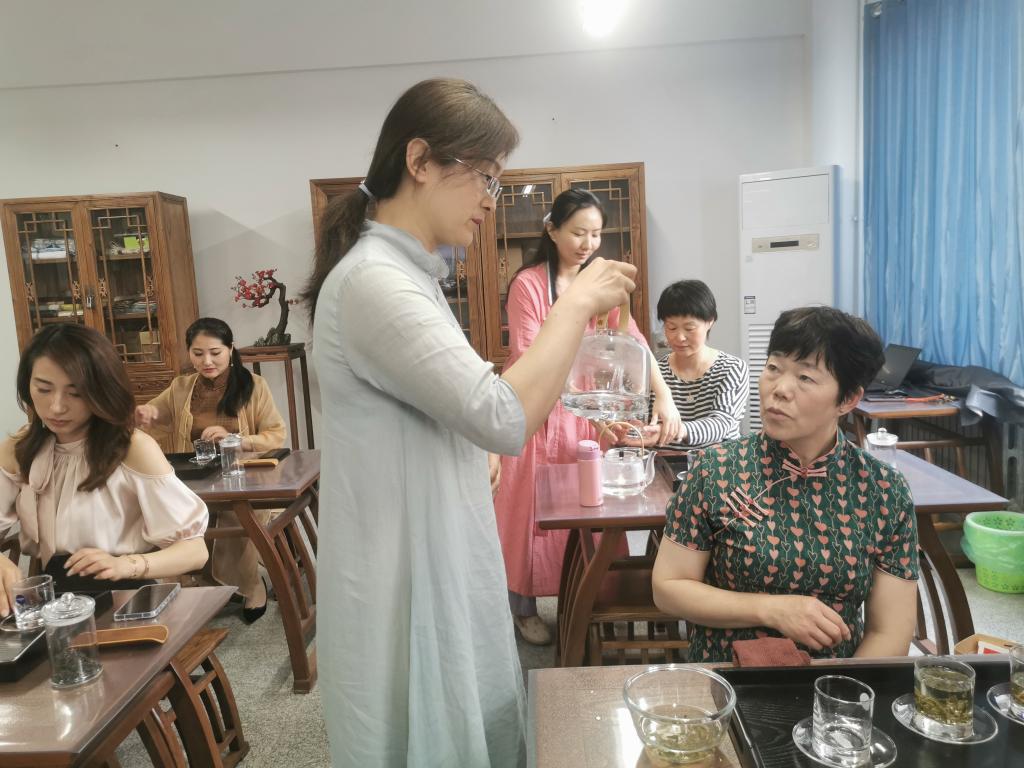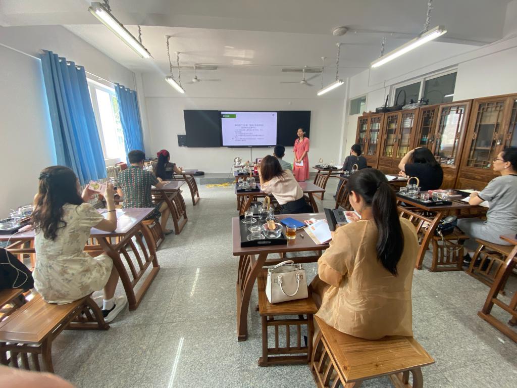 第一天的培训上午进行了茶叶基础知识的理论培训,下午教授绿茶玻璃杯冲泡技法实操培训,学员在授课老师的带领下认真学习理论知识、练习茶艺实操技巧,学习氛围浓厚。所有培训课程完成后,本期学员将参加于7月进行的职业技能等级认定考试。
