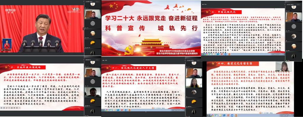 11月13日上午,青岛市新时代文明实践社科普及志愿者青岛市技师学院轨道交通学院科普基地服务队通过线上的方式,开展了“学习二十大、永远跟党走、奋进新征程”的专题学习活动,科普队成员和学生会骨干30余人参加了本次会议,轨道交通学院团总支书记黄有成老师主持会议。