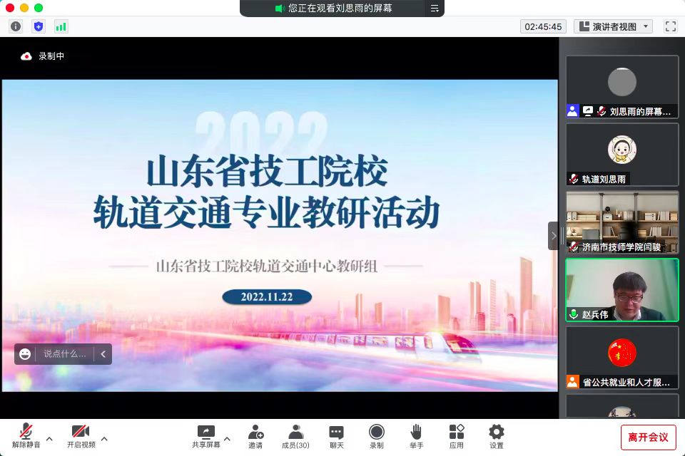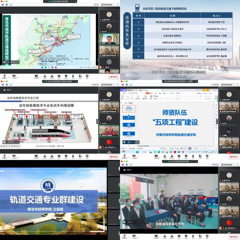 11月22日,山东省技工院校轨道交通专业中心教研组教研活动顺利举行。本次教研活动在省公共就业和人才服务中心指导下,由轨道交通中心教研组组长单位青岛市技师学院轨道交通学院承办。会议采取线上形式,来自青岛地铁集团、东营市技师学院、济南市技师学院、德州市技师学院等5家企业及院校的专家进行了专题分享,省轨道交通中心教研组单位及胶东经济圈轨道交通联盟单位近40名教师参与了此次教研活动。
