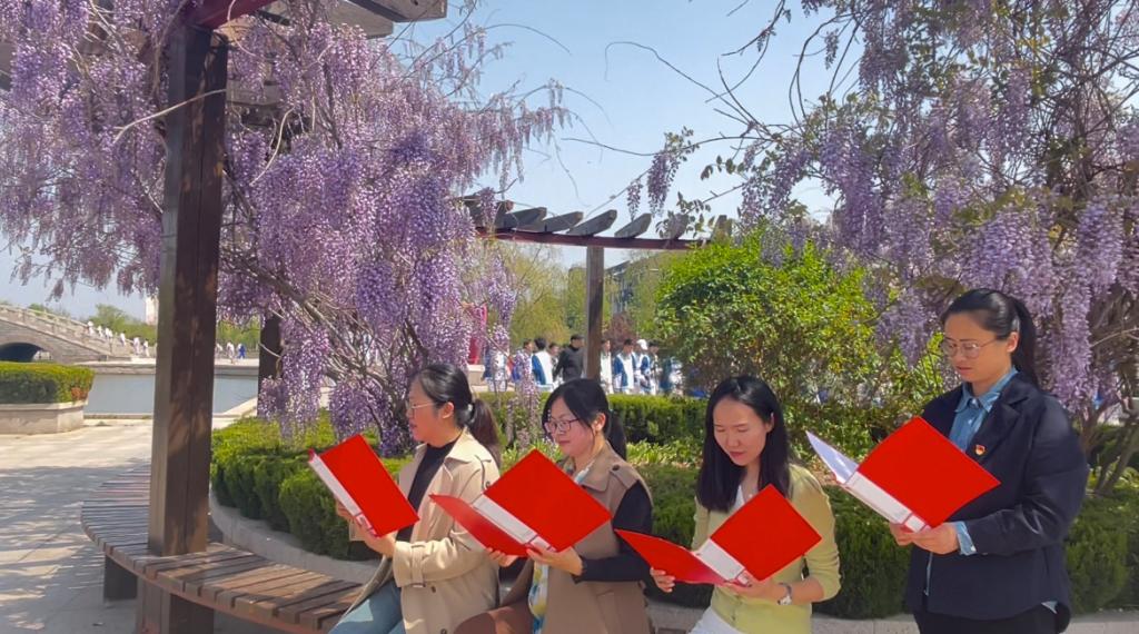 在碧波荡漾的小湖边、在环形亭的紫藤花下、在红桥边、在湖边亭上、在启智书屋、在教室里、在校园的每个舒适角落,都可以看到学生捧着一本书,沐浴在书香之中。在老师们分享的纪伯伦散文诗《致孩子》中我们悟到了父母与孩子的相处之道,“你的孩子,其实不是你的孩子,他们是生命对于自身渴望而诞生的孩子,他们通过你来到这世界,却非因你而来,他们在你身边,却并不属于你”。在工匠班激情的诵读“生命的意义在于奋斗,在于面对,在于奉献,在于活在当下,在于自我价值的实现”中,我们感受到他们的斗志和匠心精神。在王一成同学分享的《围城》中读到“城外的人想冲进去,城里的人想逃出来,我们一生都活在各种各样的围城里,唯有努力奋斗,方能打破围城。”使我们体会到在品读经典的同时,不光是在阅读一段故事,更是在经历一场人生旅程。