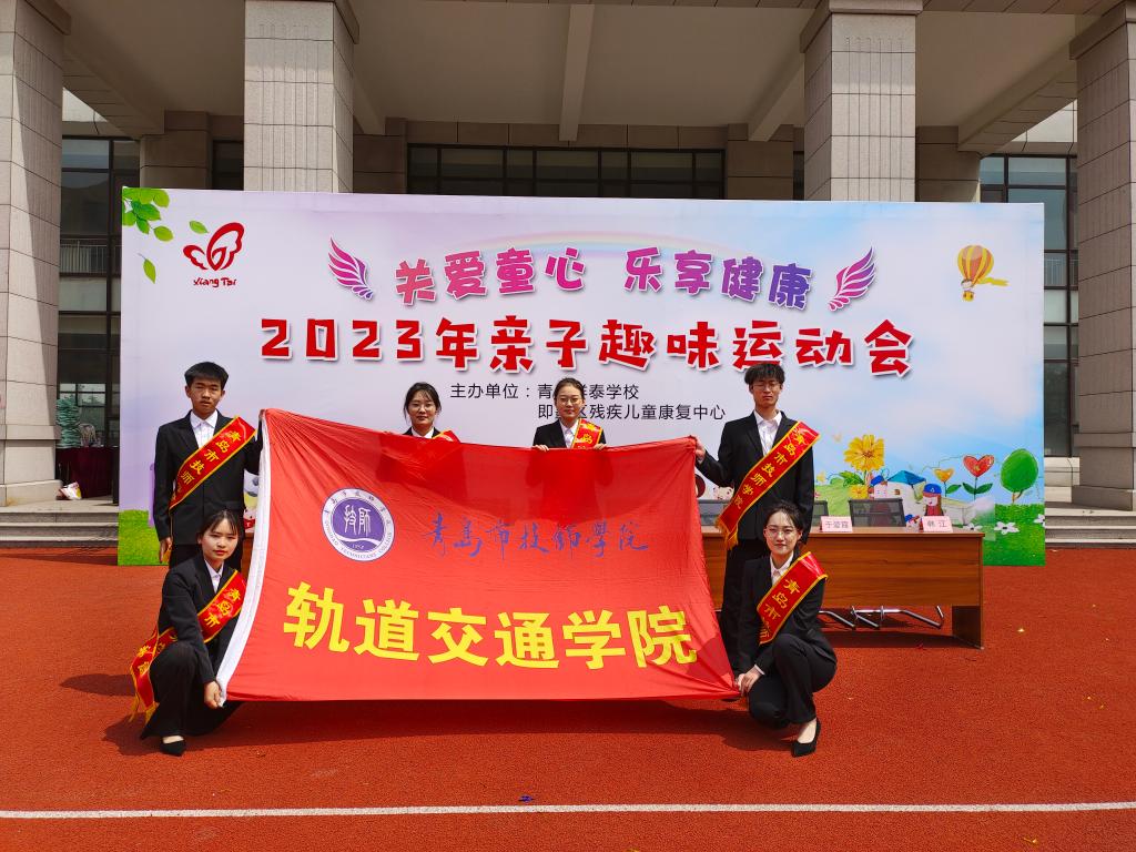 6月2日上午,轨道交通学院应邀参加由青岛祥泰学校和即墨区残疾儿童康复中心联合主办的“关爱童心 乐享健康”2023年亲子趣味运动会,轨道交通学院团总支书记黄有成带领科普基地服务队6名志愿者参与了活动。