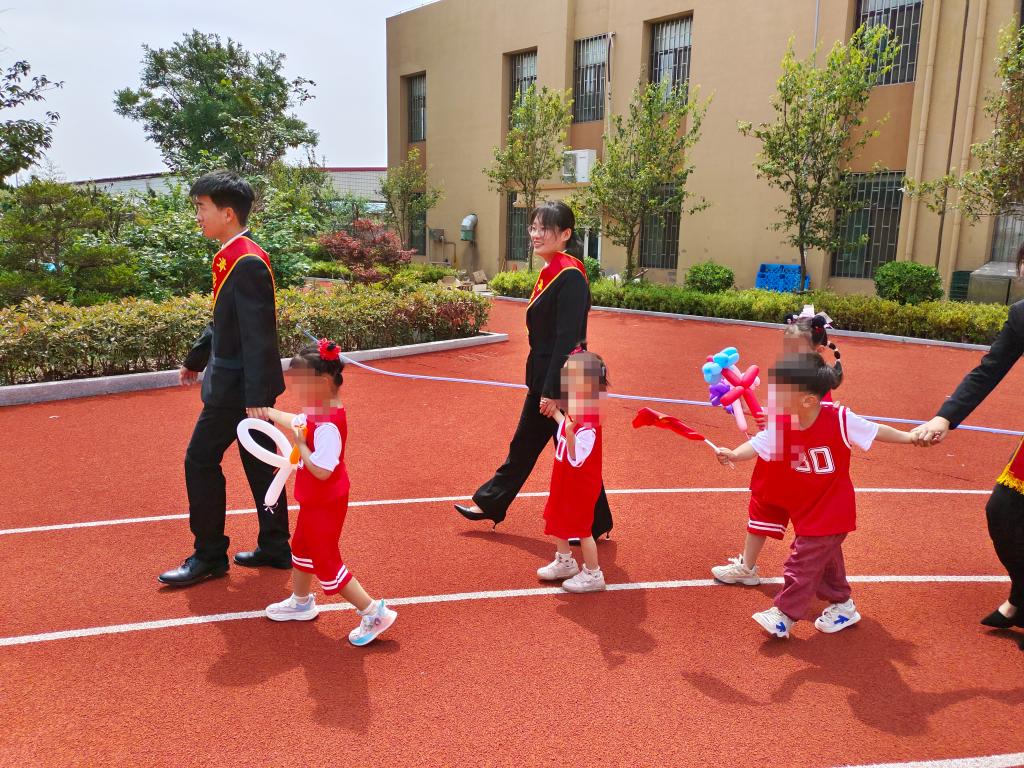 活动中,志愿者们陪同孩子们完成了运动员入场和升旗仪式,并为小观众们发放了气球,现场氛围热烈、温馨。