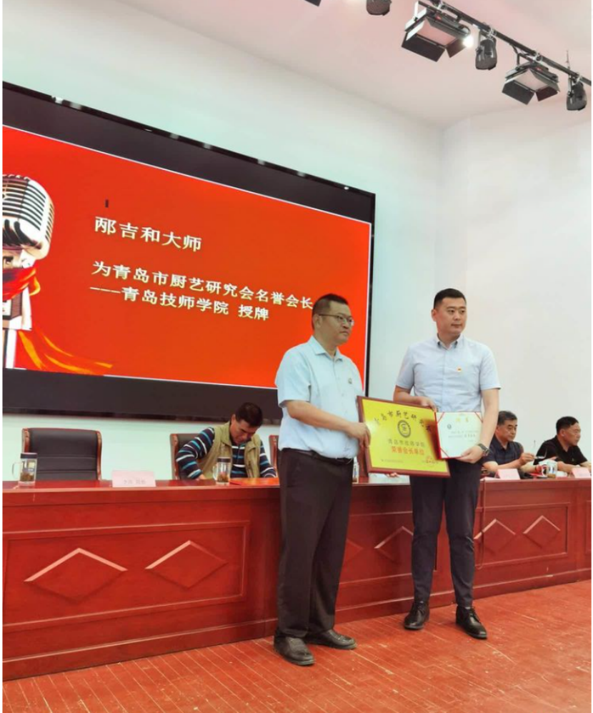 本次评审活动,由青岛市厨艺研究会联合我院及相关行业企业、名师专家,对青岛区域性美食进行评审,对特色美食、传统地方名吃进行挖掘、传承与发展,着力打造青岛地标性美食,促进青岛地区餐饮服务行业水平的全面提高。会上,山东省烹饪协会副会长、青岛市厨艺研究会会长邴吉和大师,为我院颁发了青岛市厨艺研究会名誉会长单位牌匾,以肯定和鼓励我院在青岛餐饮服务行业中的突出贡献。