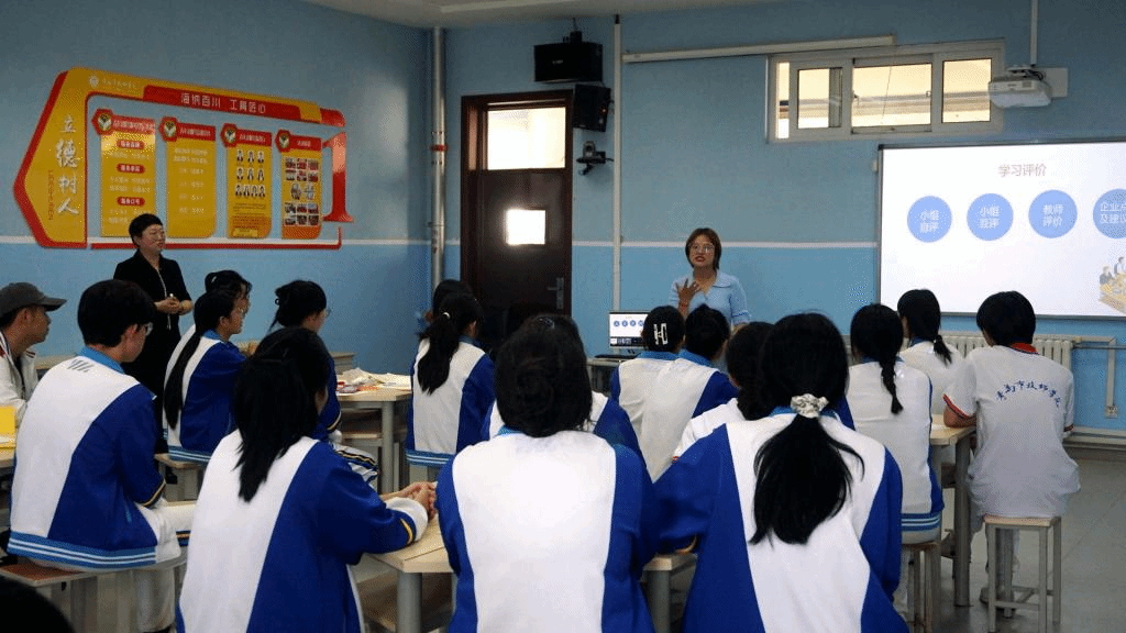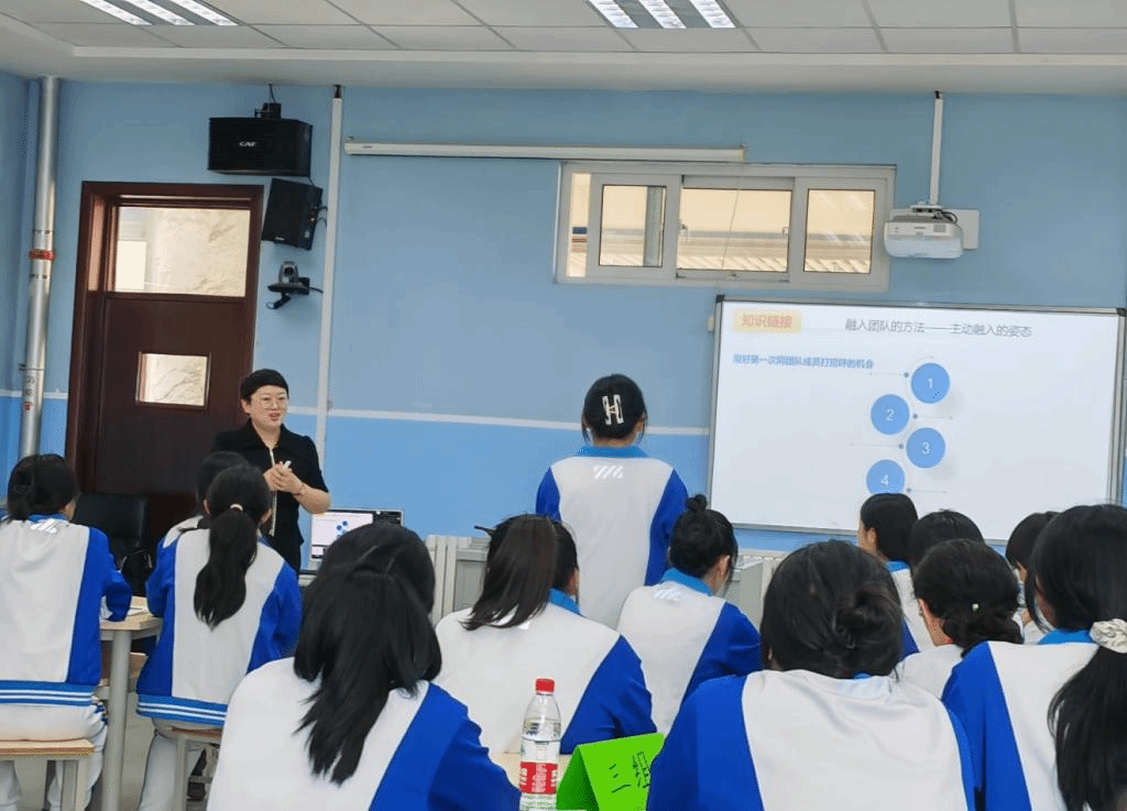 在教学过程中,隋莲老师运用了七部教学法,以积极融入的姿态为主题,进行“知识回顾”、“知识导入”、“知识体验”、“知识诠释”,学生以小组为单位进行“知识应用”,企业专家樊经理进行“知识评价”,对学生提出职场建议,加强职场训练,最后“总结升华”,实现校企协同,同频共振,共育人才。整个课堂以学生为主体,以情境为支点,以活动为载体,以问题为导向,让学生动口、动脑、动手、动心,调动了学生的学习积极性,学生既学得了融入团队的方法,又获得了愉快的情绪体验和职场训练,培养了学生的团队意识和团队精神。
