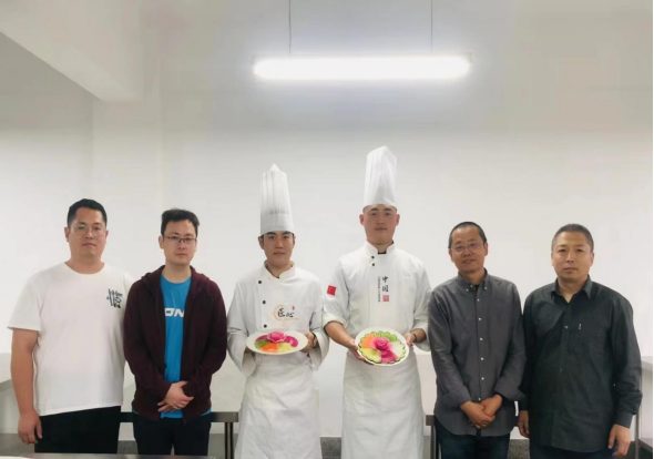 本次技能比武的项目为制作什锦拼盘,主要考查刀工和拼摆技艺。比赛现场气氛热烈,两位比武教师以最饱满的精神状态投入比赛,刀工娴熟,拼摆有序,动作自如,充分展示了扎实的基本功和高超的技能水平。