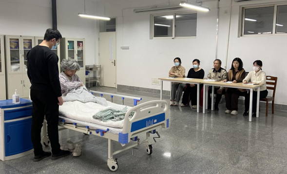 本次比赛依据世界技能大赛健康与社会照护项目的考试标准确定比赛内容,主要包括两部分:一是给偏瘫患者讲解并示范穿脱衣,二是指导偏瘫患者进行穿脱衣训练。主要考察教师在模拟情景下如何有效与患者沟通,如何指导偏瘫患者进行穿衣训练。教师们在比赛过程中沉稳应对、操作规范,得到了评委老师的一致好评。赛后康护教研室组织了评赛议赛环节,专业老师们围绕参赛教师的操作进行点评和深入探讨,在肯定长处的基础上,提出了存在的不足之处和值得探讨的问题,并有针对性地提出了改进建议,各位老师都受益匪浅。