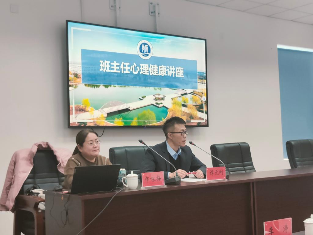 谭元刚对郑教授的到来表示热烈欢迎,强调班主任工作繁琐且辛苦,班级管理会给老师们带来一定的心理压力,维护班主任的心理健康对于老师自身及学院整体工作都非常重要。