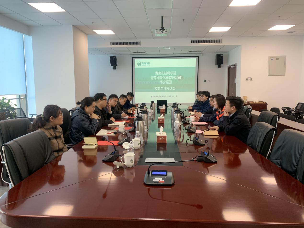 轨道交通学院紧紧围绕学院“133351”的总体工作思路,践行产教融合走在前,3月13日,在院长赵兵伟的带领下,一行四人赴青岛地铁6号线智慧运维中心进行参观学习,并围绕支部共建、校企合作新模式等问题进行了洽谈。运营一中心党委书记、总经理刘彩红,博宁福田副总经理张丽芳等参加会议。