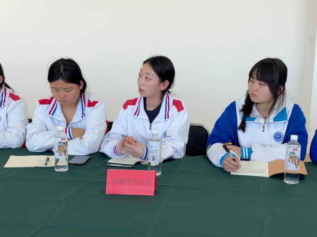会议伊始,李欢向同学们说明了开展此次座谈会的目的及意义,鼓励大家畅所欲言,积极提出自己的问题、想法与意见。在轻松的氛围和亲切的关怀下,学生代表们踊跃发言,重点围绕入学适应、课程学习、专业技能、实训实践、团学活动等情况讲述了自己的切身体会以及成长困惑,并对学校课程设置、校园文化等方面提出了意见建议。