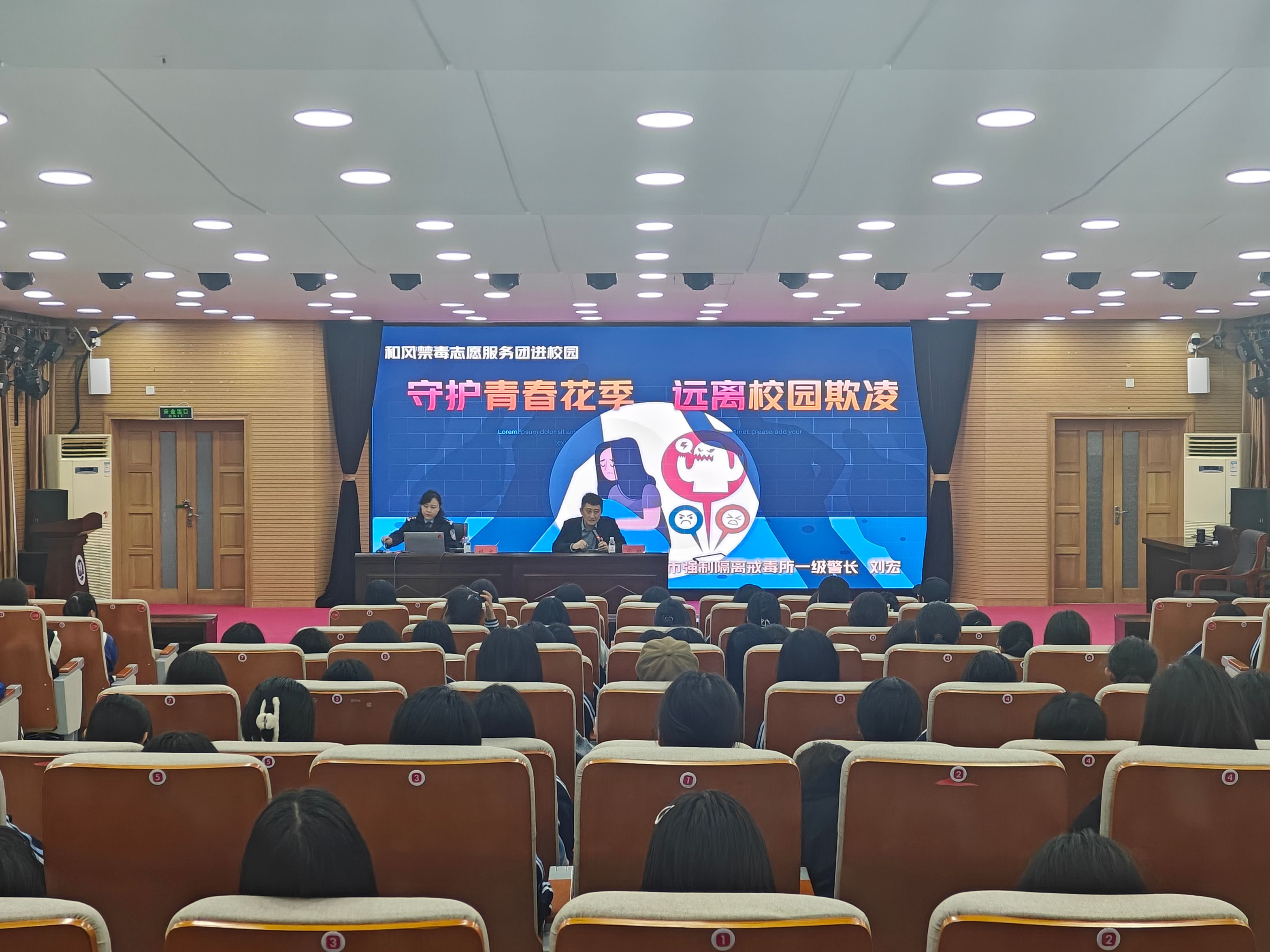 为有效预防和遏制校园欺凌事件的发生,提高学生预防和抵制校园欺凌的能力,共同营造文明和谐的校园环境。学生工作处(团委)于4月23日在5号教学楼110报告厅举办预防校园欺凌专题讲座,本次讲座特邀青岛市强制隔离戒毒所教育处一级警长刘宏主讲,学生代表100余人参加了此次讲座。