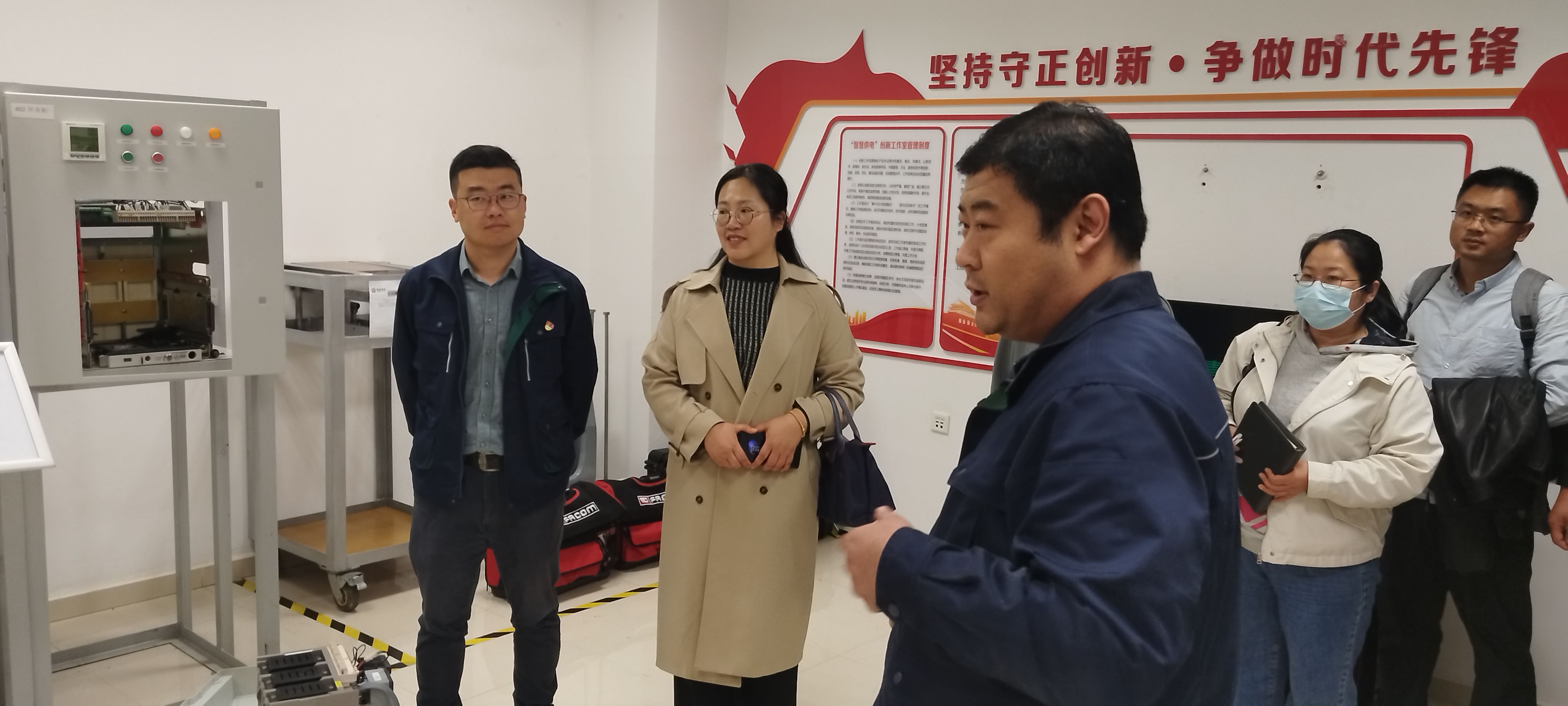 座谈开始前,兰斌霞一行参观了供电专业训练营与供电专业技能提升工作站,深入学习企业为适应市场需求,以问题为导向,自主研发实训设备,不断提升工作效率与人才培养质量的先进经验。