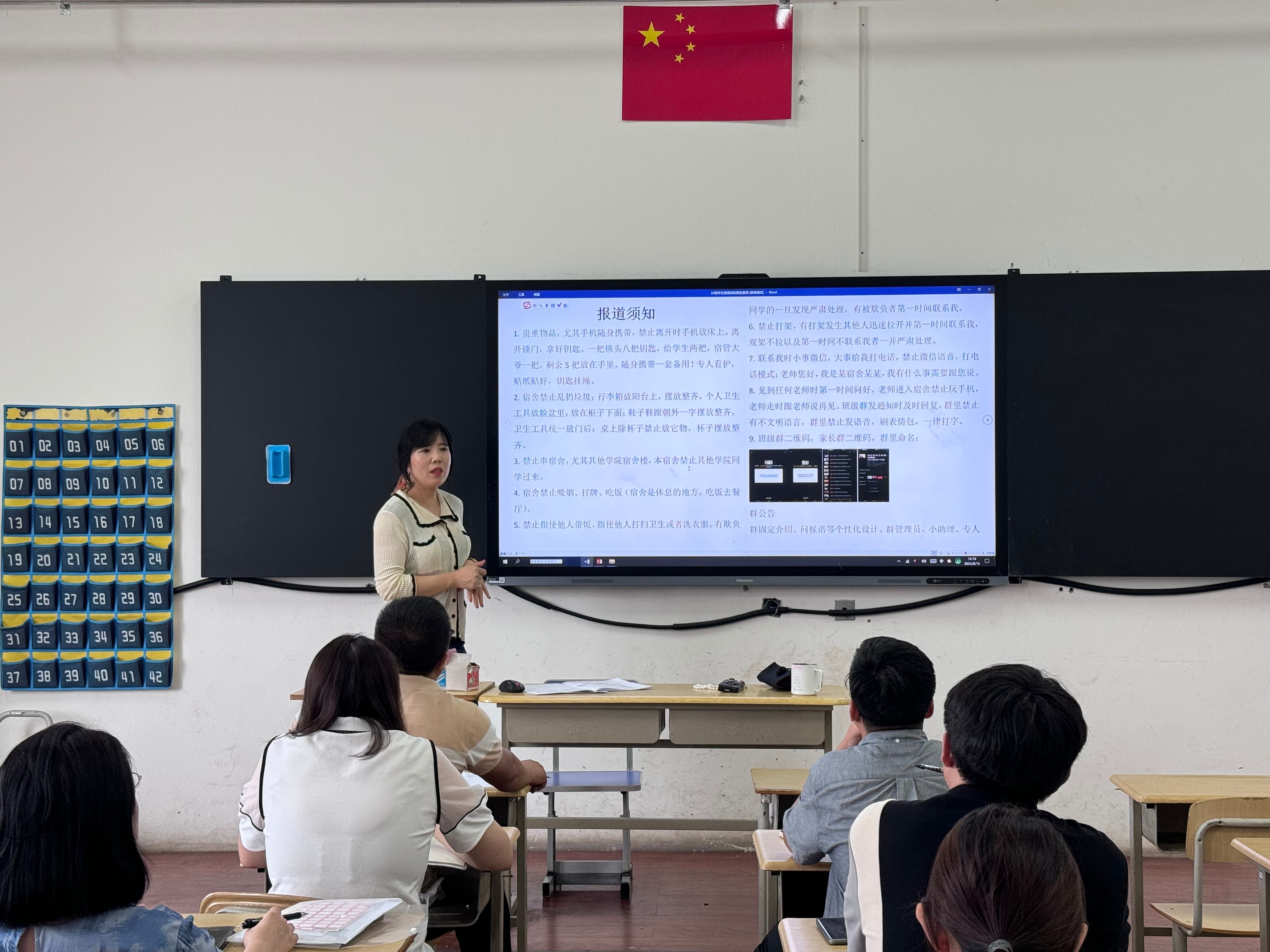 作为名班主任工作室的主持人,窦士君老师结合自己20多年的班主任工作经验及个人整理的班级管理典型案例,主要围绕迎新须知及注意事项、如何带好一个班集体、如何与家长建立良好的关系、实现家校共同育人及突发事件如何处理等四个方面进行了分享,为在场的老师们提供了很多实用的班级日常管理资料。窦老师的讲解生动有趣、实用有效,老师们纷纷表示受益匪浅。