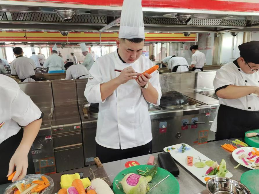 中式烹调赛项于城阳区新东方烹饪学校举办,“精技”是此次大赛的新标准,学院选手根据所学专业知识充分发挥自身想象力和创造力,不断打磨自身作品。西餐(世赛选拔)赛项于青岛酒店管理职业技术学院举办,参赛选手们用精湛的技艺,将简单的食材转化为色香味兼备的艺术品,每一道作品都蕴含着对美食的深刻理解。