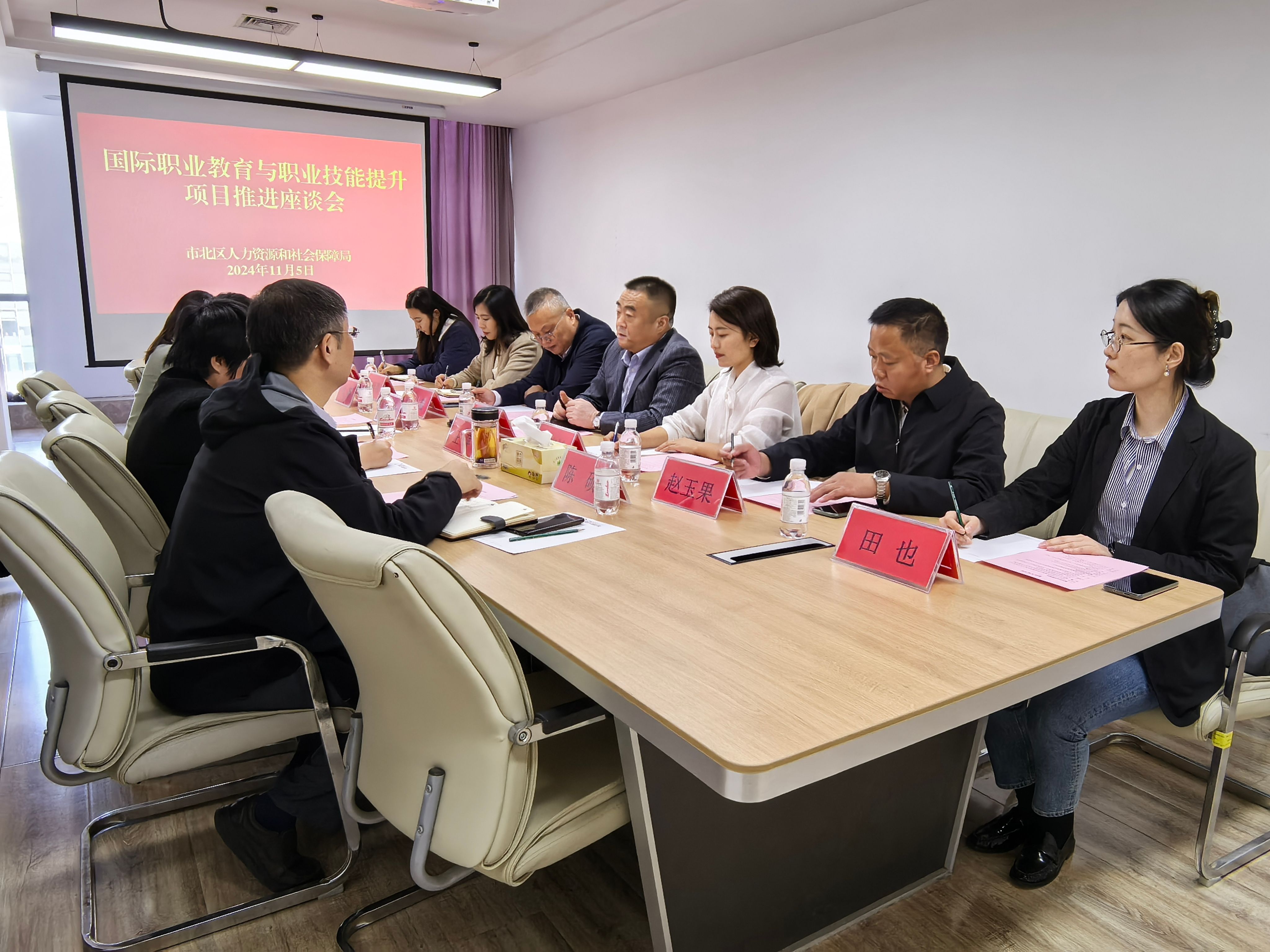 11月5日,学院职业培训与评价中心、青岛市中华职教社国际教育交流合作专委会及国际培训相关企业共同赴市北区人力资源和社会保障局洽谈国际培训相关事宜。市北区委组织部副部长、区人社局党组书记、局长、一级调研员王萍,青岛市中华职教社国际教育交流合作专委会主任宋应涛,学院职业培训与评价中心孙燕燕出席会议。