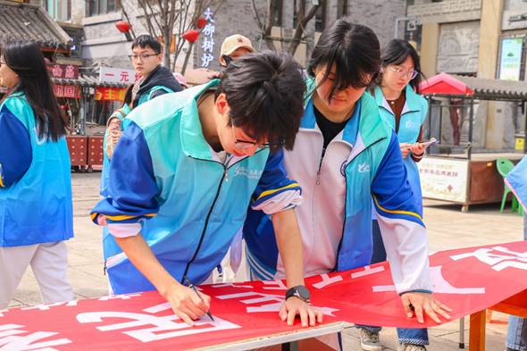活动最后,学院志愿者与山东大学(青岛)的百千万志愿者和医院的专家团队一起,郑重地在“全面行动、全力投入、全民参与、终结结核”横幅上签名,表达出为实现全球终止结核病而奋斗的决心。