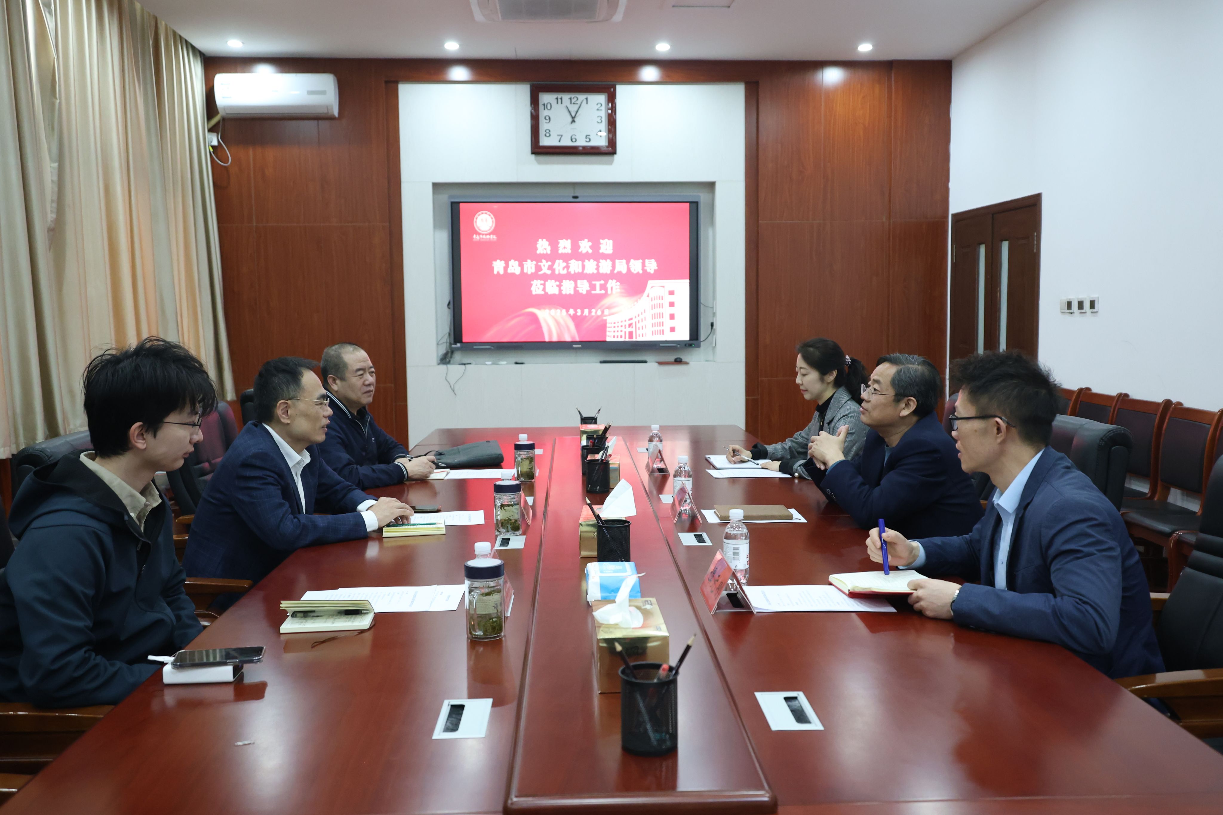 3月26日上午,青岛市文化和旅游局红色文化与革命文物处处长张军一行3人,到我院开展专题调研,考察我院红色文化开展情况。马克思主义学院院长李玮、学生工作处(团委)处长谭元刚、马克思主义学院文化与实践教研室主任孙袁帅等陪同调研。