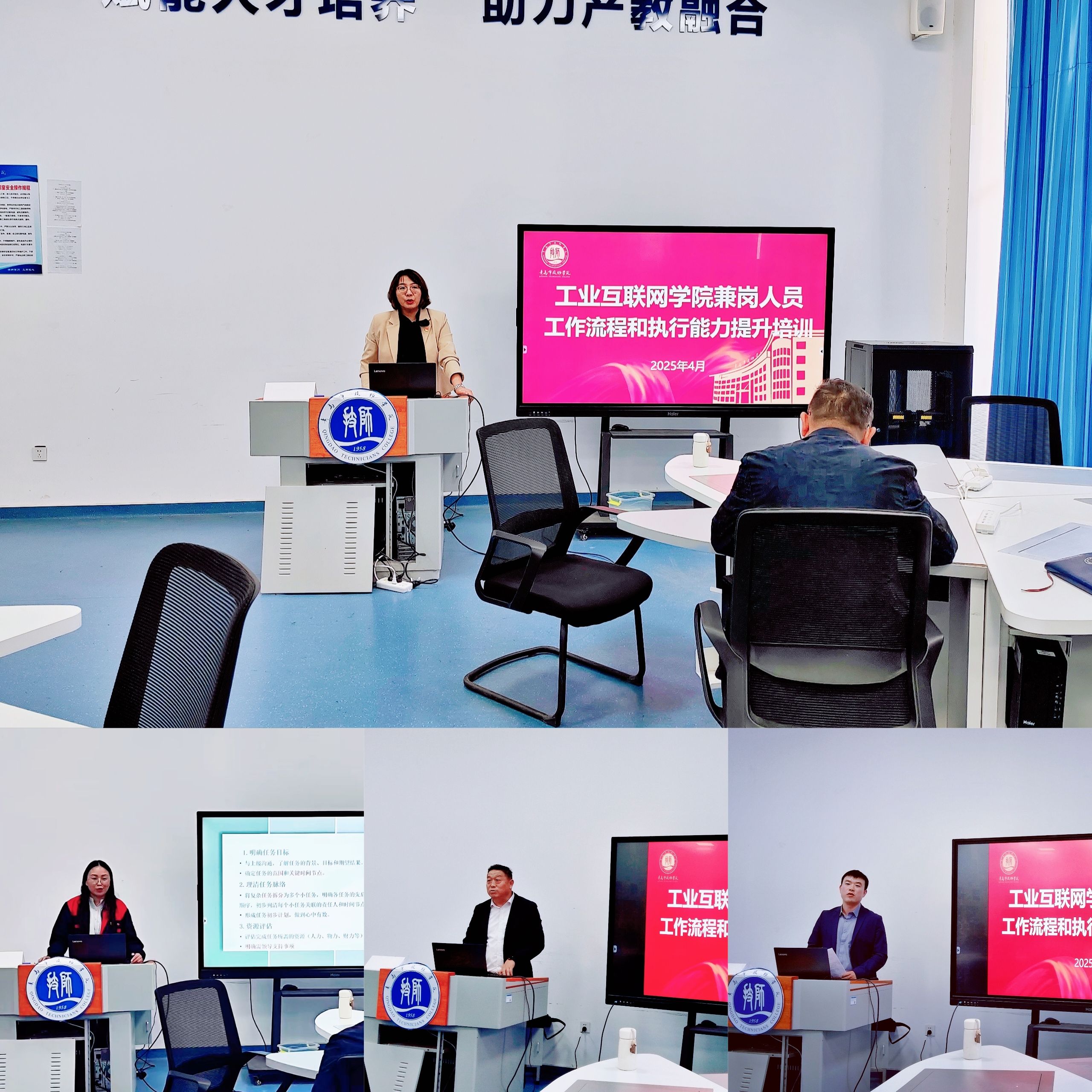 2025年4月25日,工业互联网学院在信德楼101举办“工作流程与执行能力提升”专题培训,旨在全面提升兼岗人员的执行效率与协作能力,进一步规范工作流程、强化责任意识。工业互联网学院院长张立楠、副院长傅军及全体兼岗人员参与了此次培训。