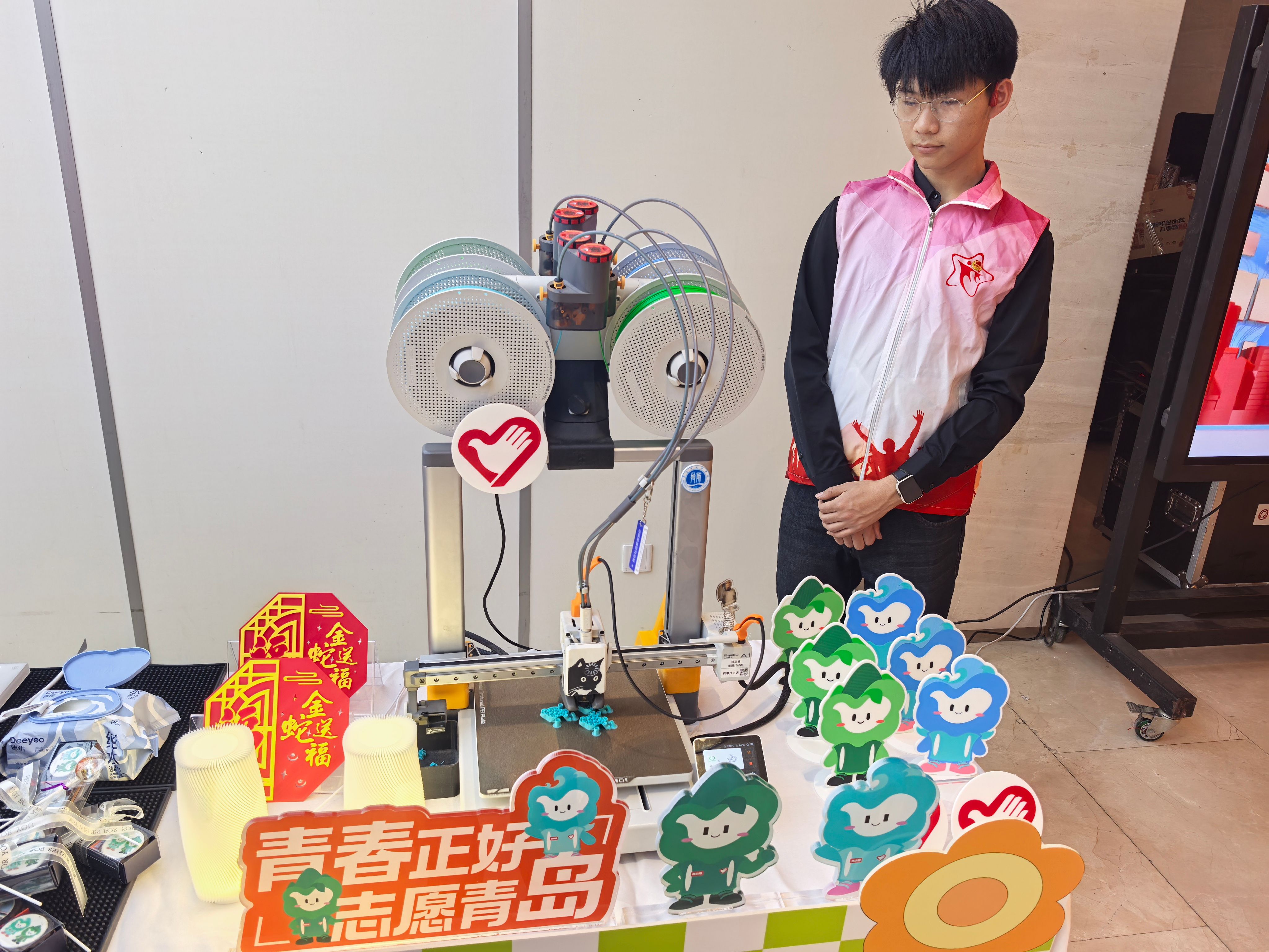 近期,由共青团青岛市委主办的“青岛市青春志愿文化季志愿服务市集”在青岛市广电大厦演播厅隆重举行。学院智能制造学院“福”进万家3D打印志愿服务社团受邀参加,以科技与创新为特色为市民带来了一场别开生面的公益体验,展现了青技学子的社会担当与技能风采。