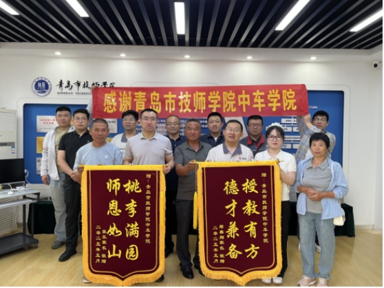 锦旗是家长对学院工作的最高褒奖,更是对全体教职工的鞭策。学院始终坚信,以学生为中心,处处为学生着想,对于学院毕业的学生倡导“扶上马,送一程”,希望两位同学在新工作岗位上要发扬在校形成的刻苦钻研、不怕吃苦的精神,在工作中尽快做出成绩,为学院争光添彩。郑善翔父亲动情地说:“过去总觉得技工教育不如本科,如今孩子用实力证明,技能成才同样能报效国家!”夕阳余晖中,锦旗上的鎏金大字熠熠生辉,映照着家校社企协同育人的光明未来。