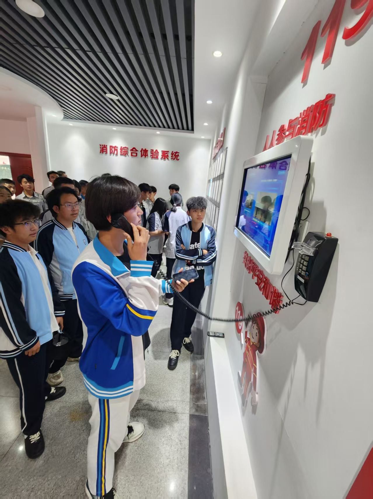 当日下午,学生代表们抵达教育基地后,消防员首带领同学们参观了应急通讯系统展示区,详细讲解应急通讯设备的功能与操作流程,并邀请学生代表体验信息传输操作、实时对接救援现场与指挥中心,直观感受科技在应急救援中的关键作用。