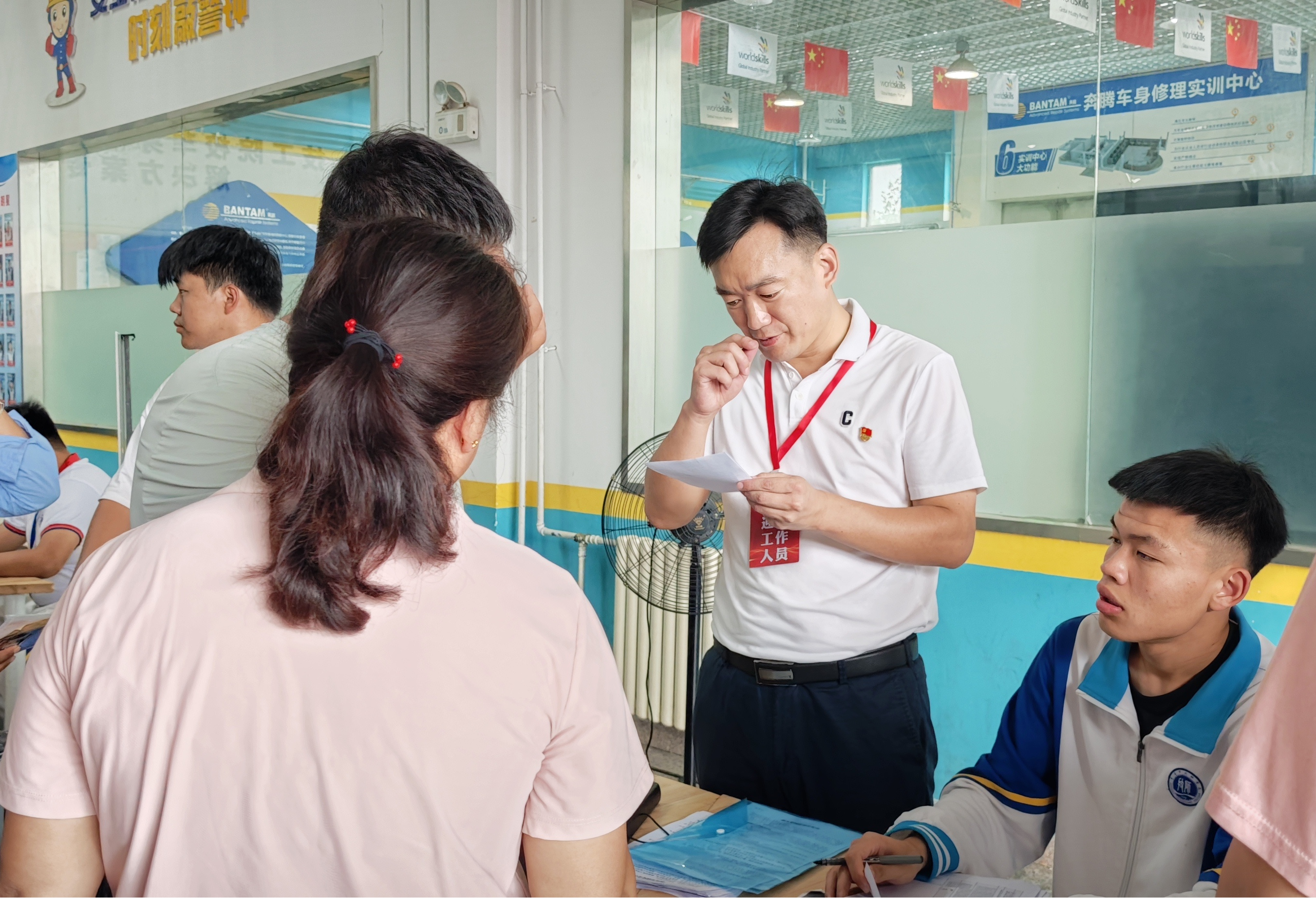迎新不仅是新生的“开学第一课”,更是家校协同育人的“首次连心会”。报到当天,汽车技术学院同步组织新生家长会和班级主题班会,通过“家校沟通”与“班级融入”双线联动,既打消了家长的顾虑、凝聚育人共识,也帮助新生迅速打破隔阂、建立集体归属感,为他们筑牢“家校协同+班级凝聚”的双重基础。