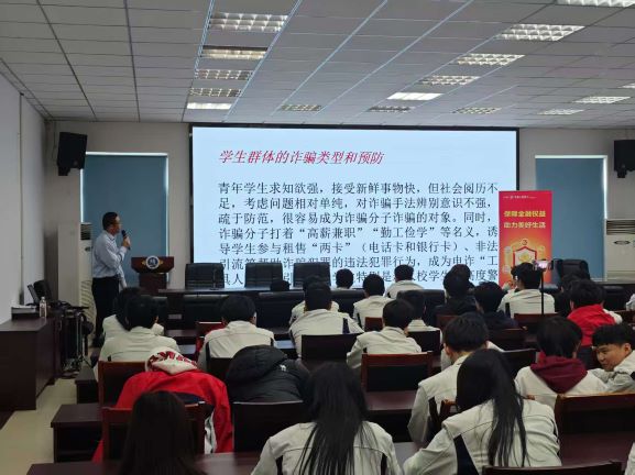 10月28日,中车学院邀请工商银行即墨分行反诈宣传中心华成风主任到校开展校园反诈安全宣讲,全体在校生参与讲座。