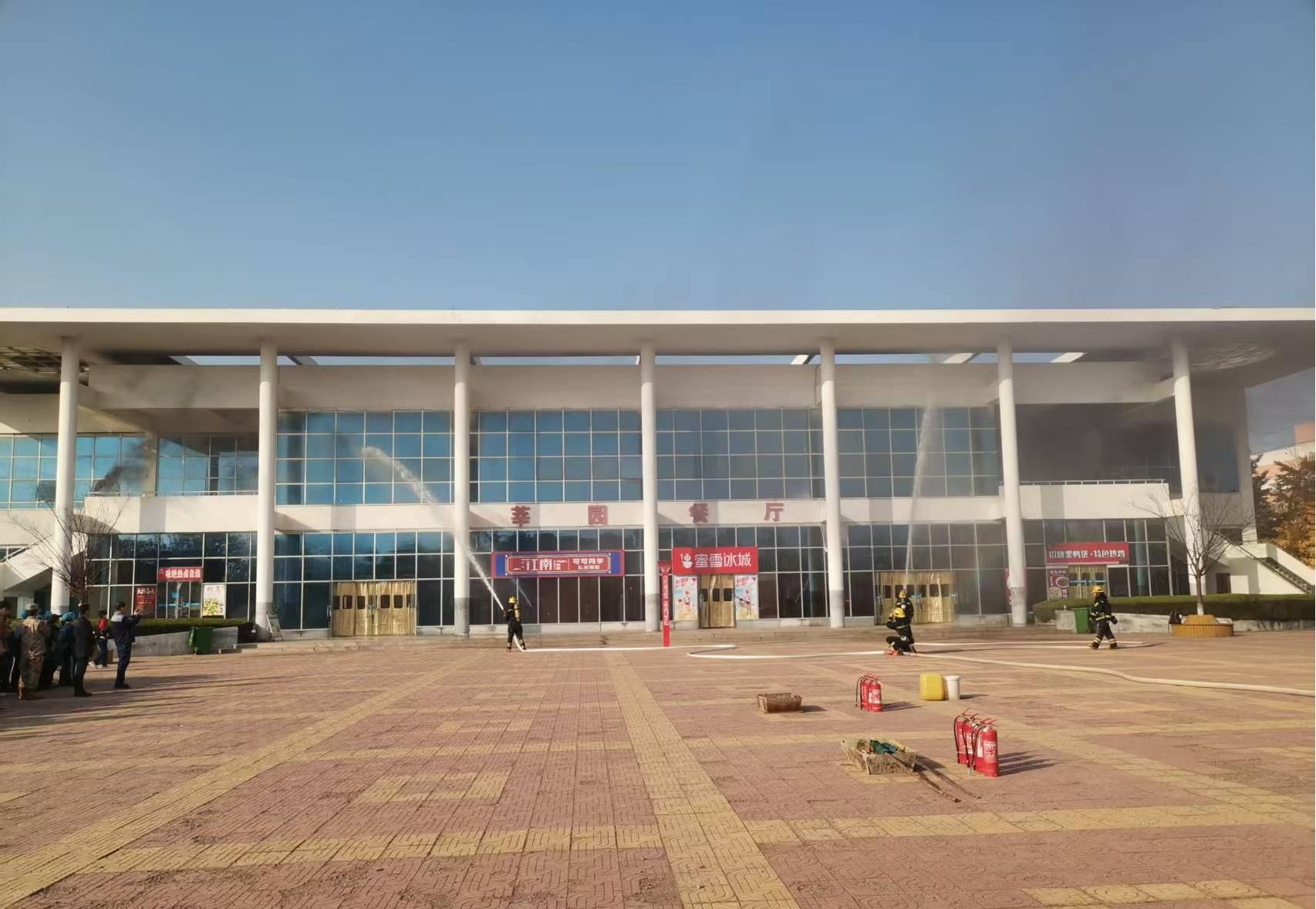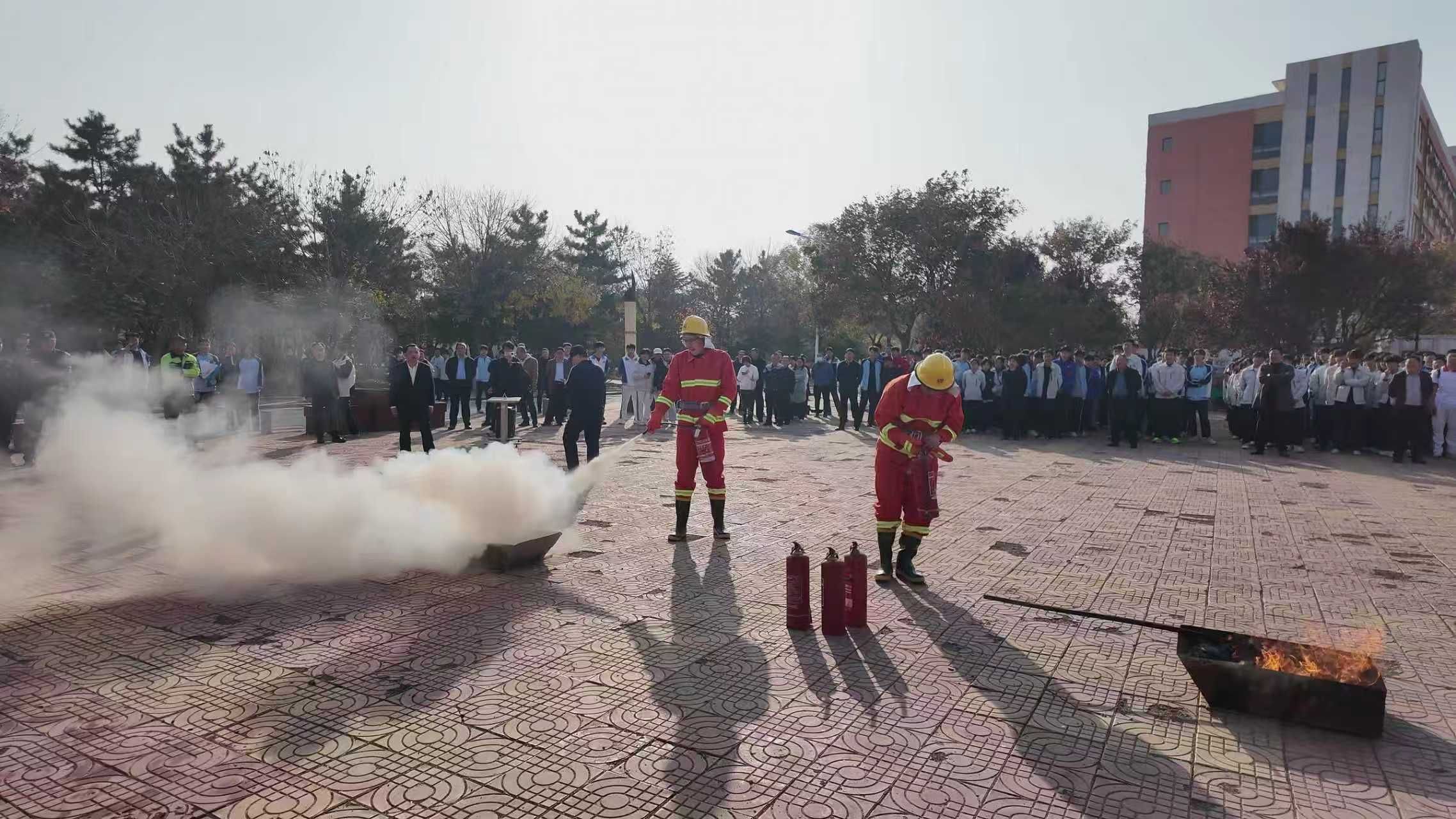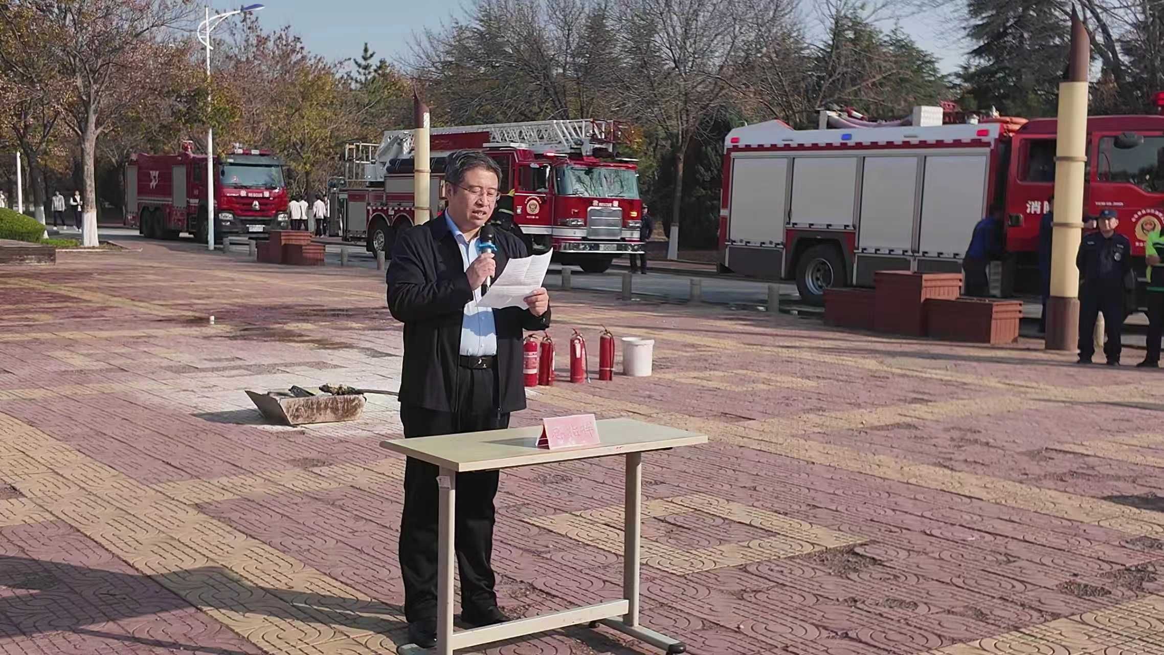 2025年11月11日下午,在即墨校区乐群广场,学院联合即墨消防大队成功举行了消防综合演习。学院党委委员、副院长王海宝担任总指挥,学院师生代表及驻校经营单位代表参加本次演习。