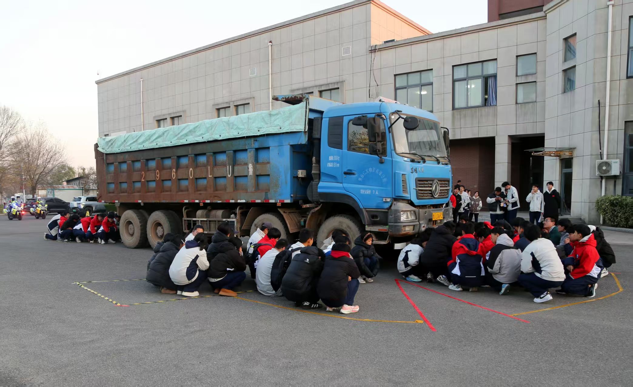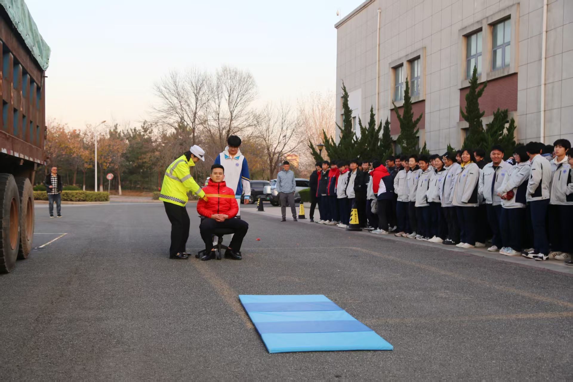 走出课堂,同学们在户外参与了沉浸式实景模拟活动。民警通过现场演示,向大家展示不佩戴头盔、不系安全带的危害,以及大货车盲区的危险性,进一步增强学生的安全意识和应急能力。