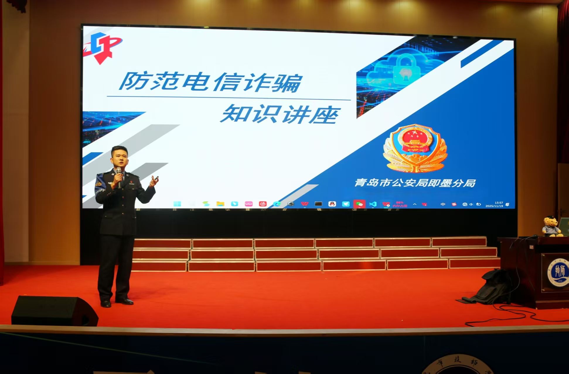 为切实增强学生法治观念与安全防范意识,营造平安和谐的校园环境。近期,学院联合青岛市公安局即墨分局共同开展了以“警校携手筑平安”为主题的校园宣防活动。活动围绕反诈防骗、法治教育、交通安全等内容,通过专题讲座与户外实景互动相结合的方式,为同学们带来了一场生动而实用的安全教育课。