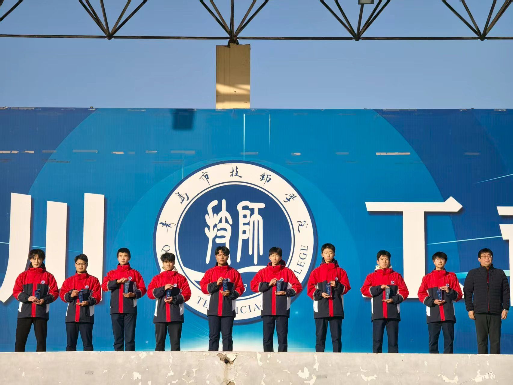 伴随着雄壮的国歌,五星红旗冉冉升起,全体师生肃立行注目礼。轨道交通学院23-5机电一体化技术3班杨阳同学作为学生代表发表国旗下演讲,他以青春视角诠释法治精神,号召同学们主动学法、自觉知法、严格守法,将法治观念融入日常学习生活,以责任担当践行青春使命。仪式上还对学院2025年趣味运动会单项挑战赛各院系冠军予以表扬,肯定他们在赛场上展现的拼搏劲头与协作意识,以此激励全体同学积极投身体育锻炼,强健身体素质。