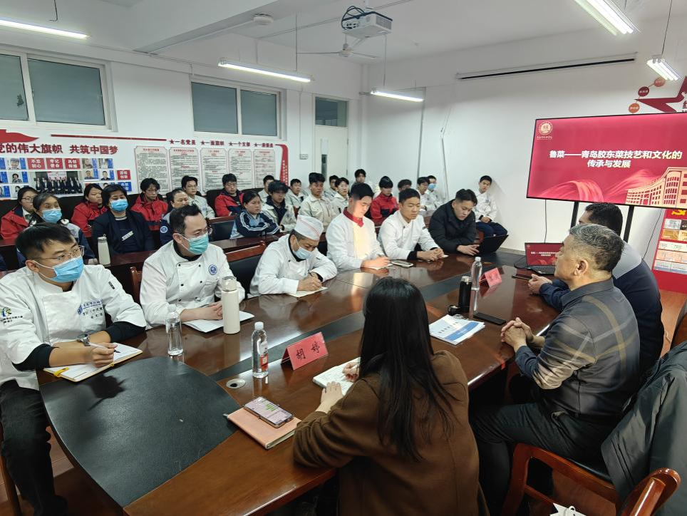 为深化鲁菜技艺传承、推动烹饪专业教学创新,12月2日,烹饪学院开展第十届技能节系列活动之“与大师对话——鲁菜技艺与文化的传承与发展”专题交流会。邀请注册中国烹饪大师、鲁菜技艺与文化传承人王振才教授亲临现场,与烹饪学院副院长胡婷、烹饪专业全体教师及中式烹调专业青苗班学生展开深度交流,共探鲁菜传承新路径、教学改革新方向。