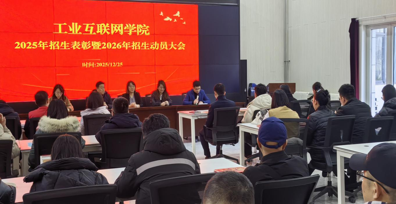 为更好总结2025年招生工作经验,做好2026年工作动员部署。12月25日下午,工业互联网学院在信德楼报告厅召开2025年招生表彰暨2026年招生动员会,招生就业处代表綦真、常广发及工业互联网全体教职员工参会。