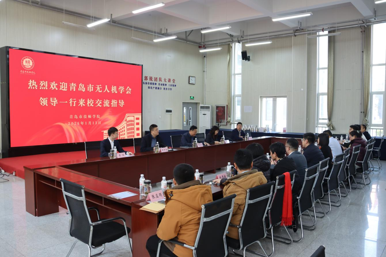 为精准对接无人机产业发展需求,深化产教融合协同育人,1 月 13 日,青岛市无人机学会会长王旭红带领学会骨干及企业代表一行 14 人莅临学院开展交流座谈。智能制造学院院长崔桂发、副院长焦建静接待,双方围绕人才培养、资源共享等议题深入交流,达成初步合作意向。
