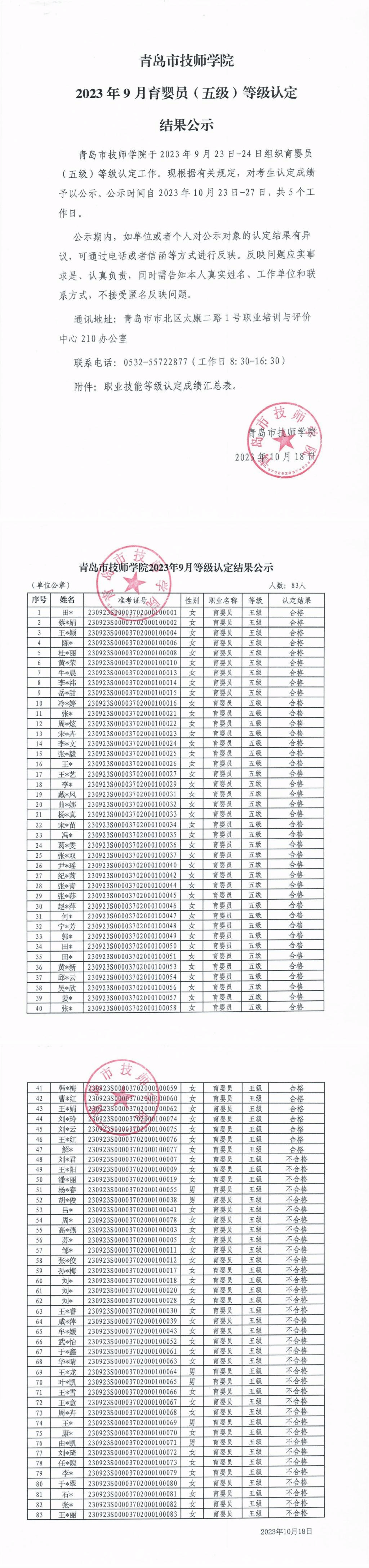上一条: 2023年9月中式面点师(四级五级)等级认定结果公示 下一条: 2023年9月家政服务员(五级)等级认定结果公示