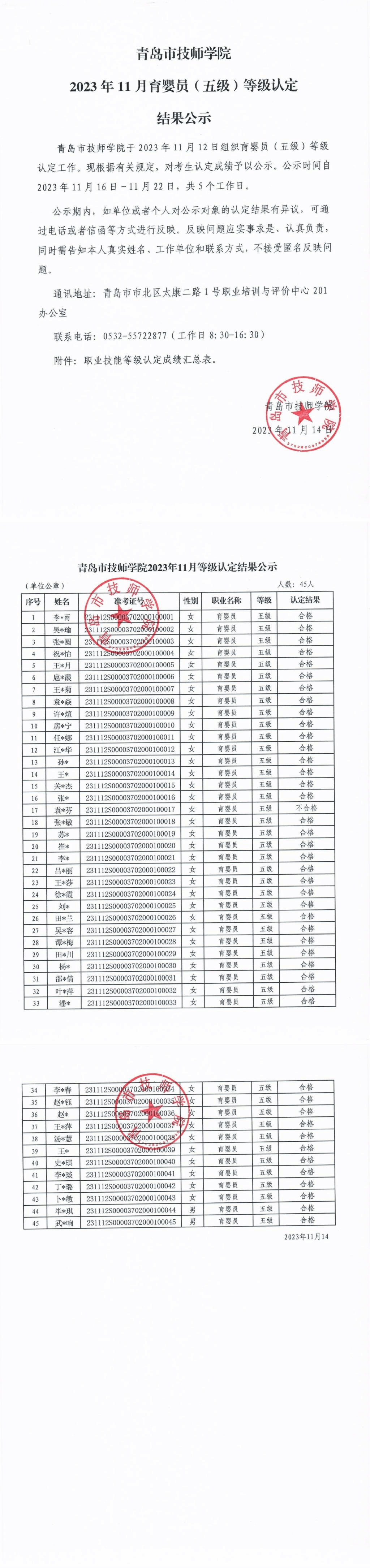 上一条: 2023年11月电工、钳工(企业新型学徒制四级)等级认定结果公示 下一条: 2023年9月中式面点师(四级五级)等级认定结果公示