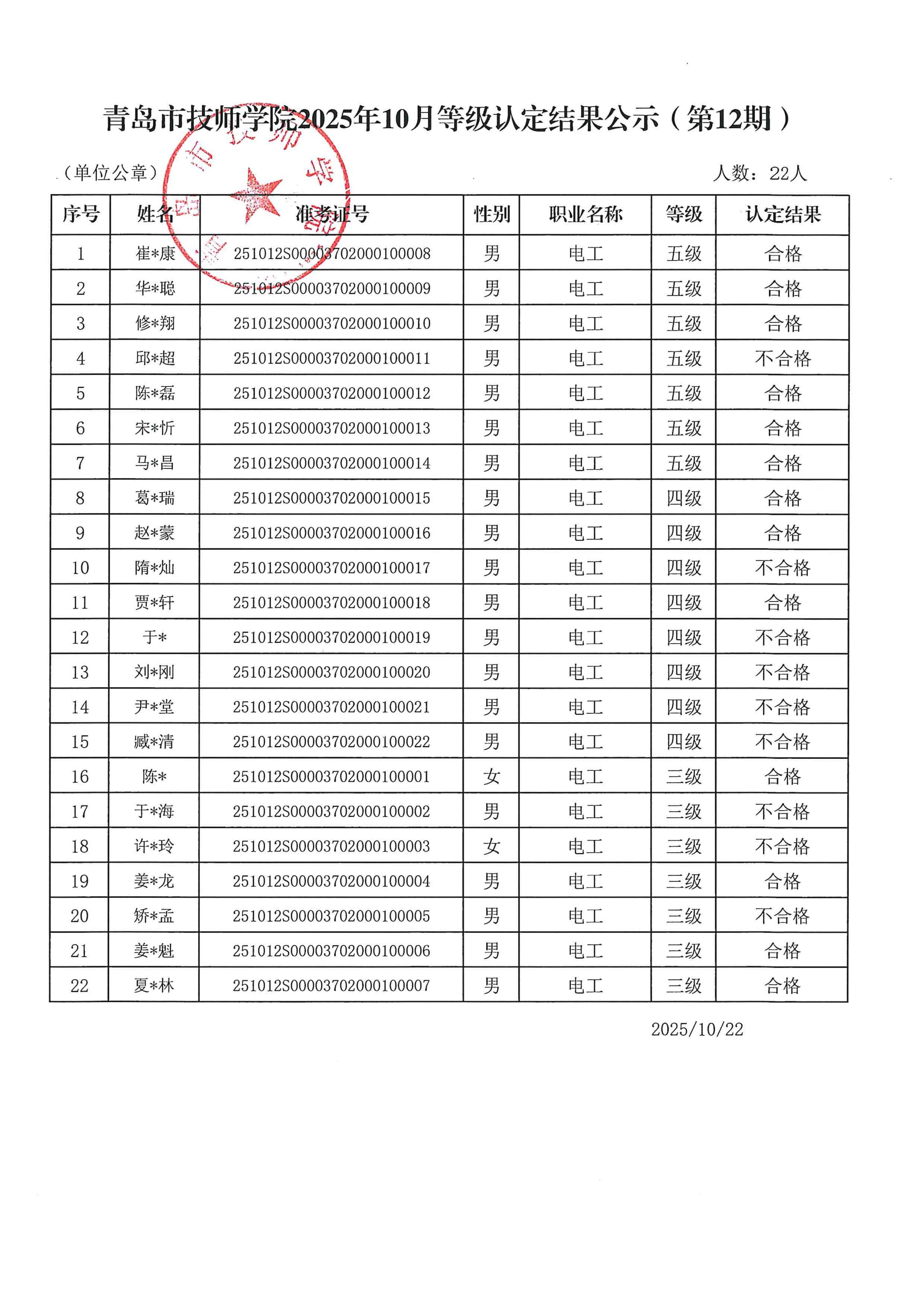 上一条: 2025年9月中式烹调师(四级、三级)等级认定结果公示 下一条: 2025年9月养老护理员(五级、三级)等级认定结果公示