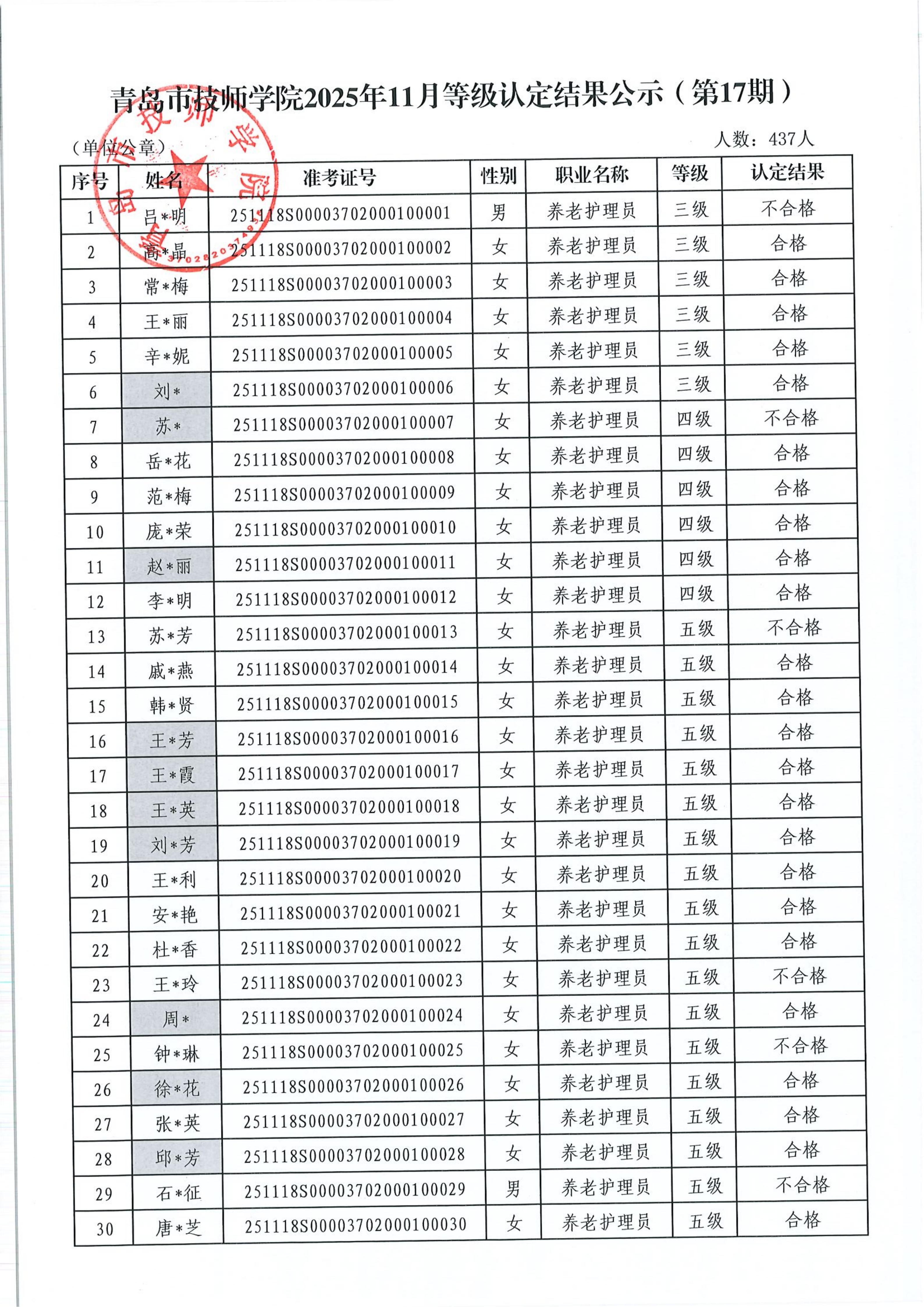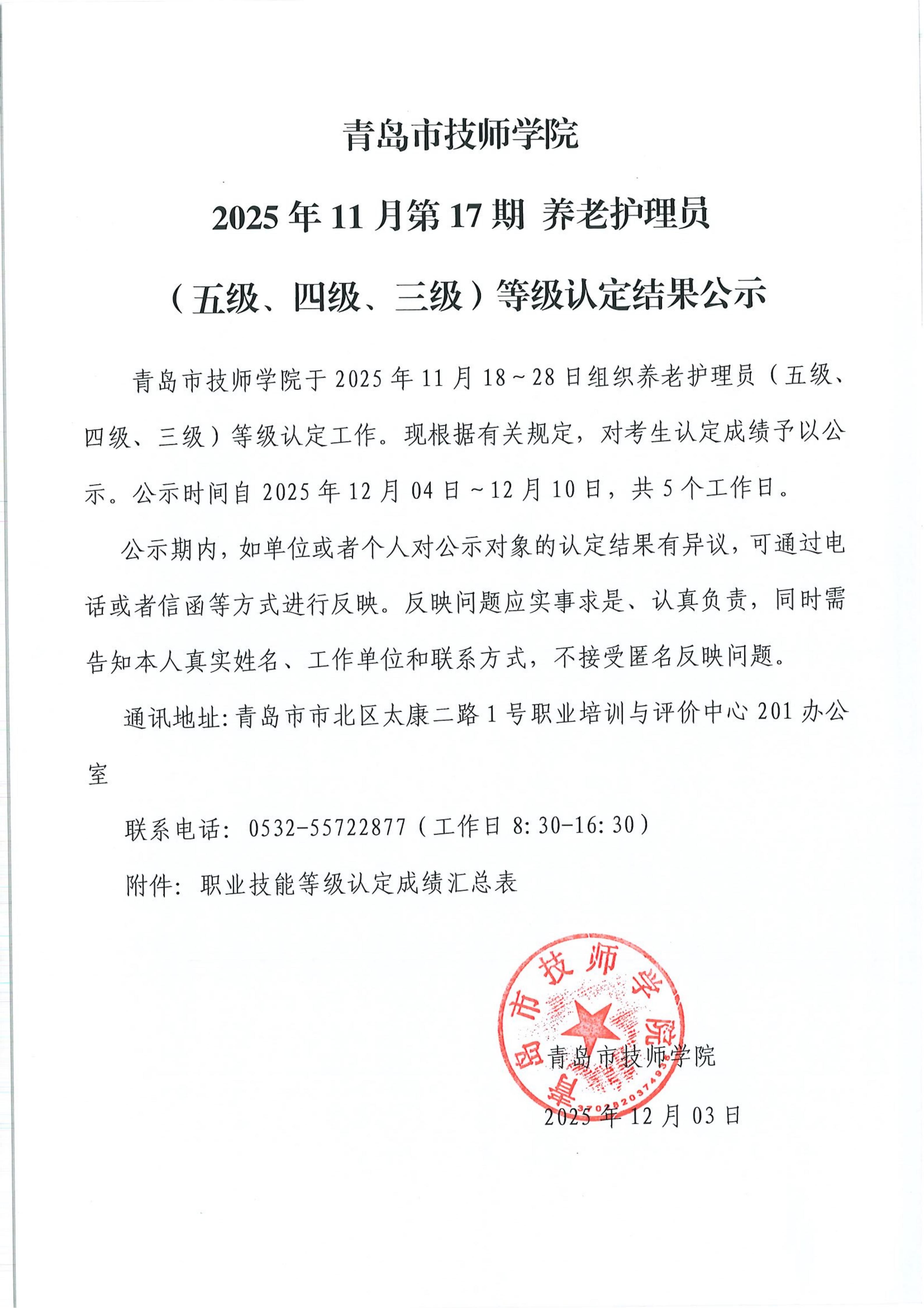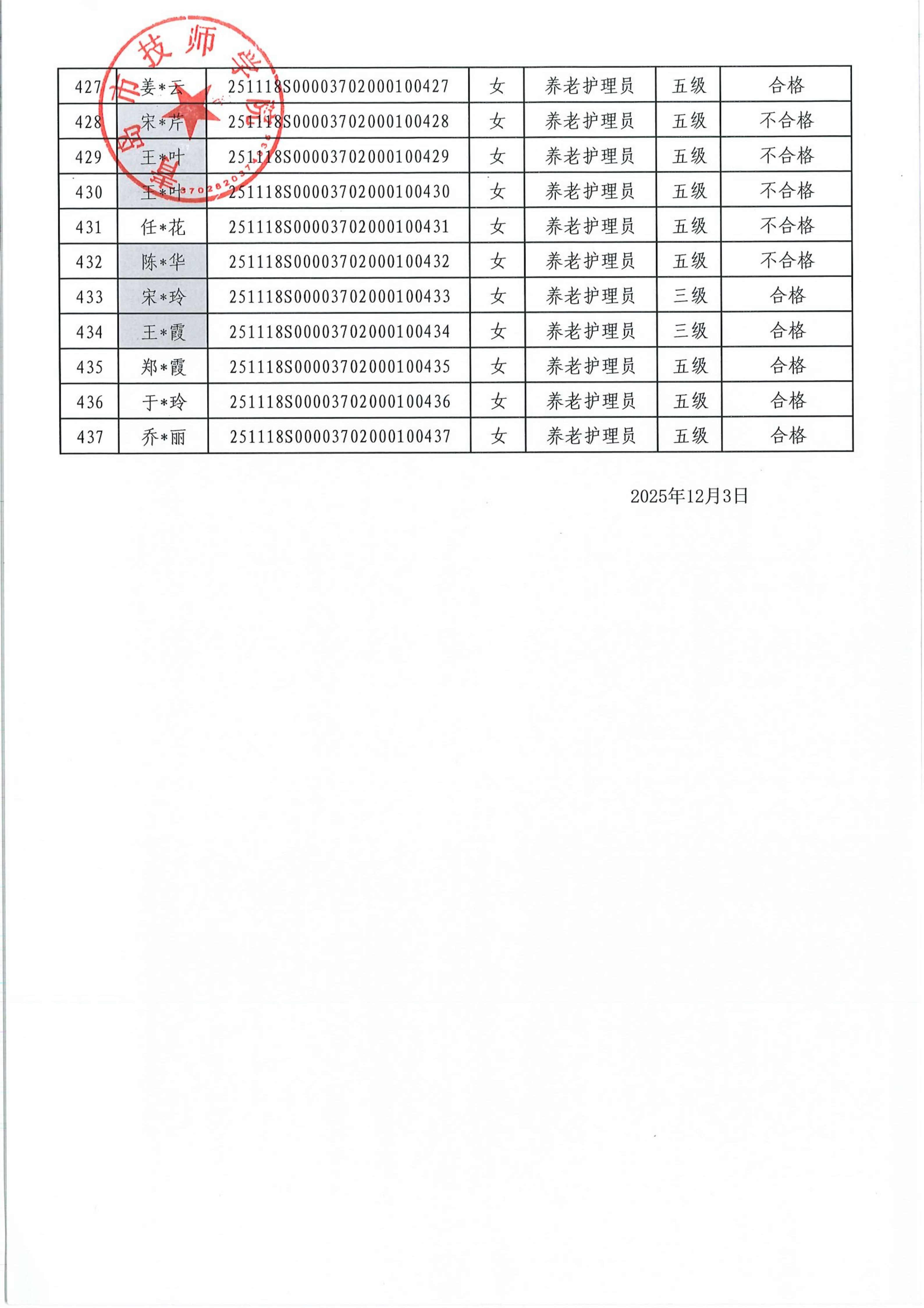 上一条: 2025年12月养老护理员(五级)等级认定结果公示 下一条: 2025年11月电工、装配钳工(五级、四级、三级、二级)等级认定结果公示