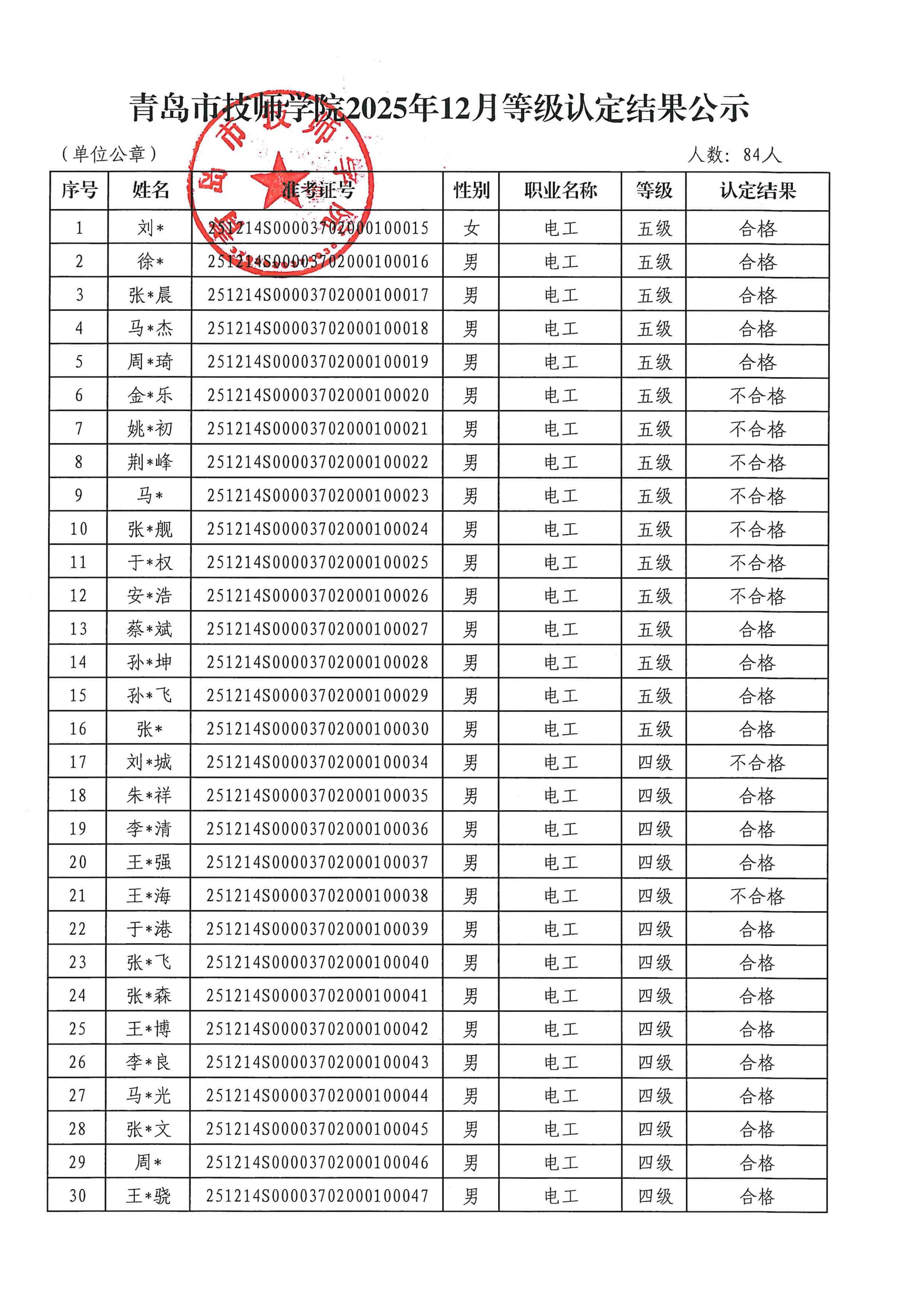 上一条: 2025年12月养老护理员(五级、三级)等级认定结果公示 下一条: 2025年11月中式面点师(五级、四级、三级)等级认定结果公示